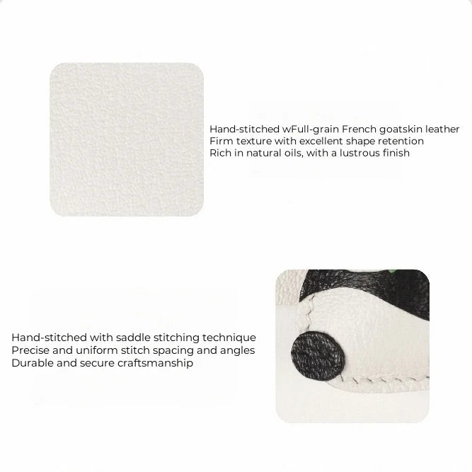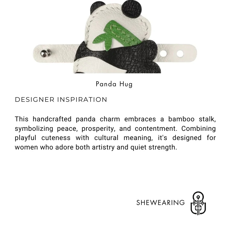 Channel calm strength and subtle charm with this Bamboo-Hugging Panda Leather Bag Charm. Lovingly handcrafted from premium full-grain leather, the design captures a serene panda gently holding a stalk of bamboo—an emblem of prosperity, grace, and gentle resilience in many cultures.