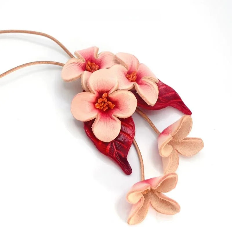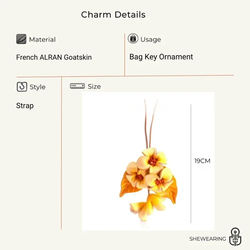 Bloom of Love Leather Bag Charm – Handmade Full-Grain Leather Flower Pendant | Elegant Botanical Keychain | Romantic Gift for Women