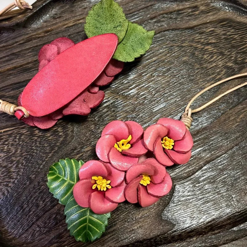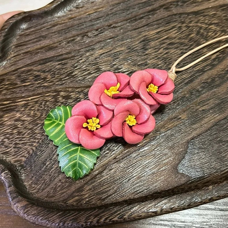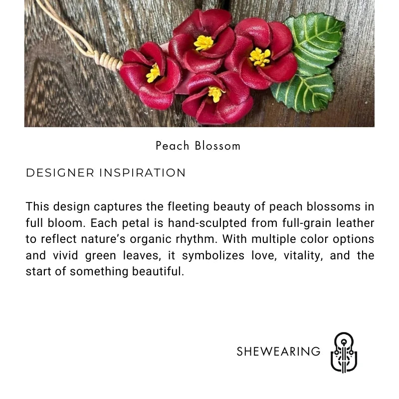 Delicately handcrafted, the Peach Blossom Leather Bag Charm brings the poetic spirit of spring to your daily accessories. Featuring a lifelike cluster of peach blossoms and realistic green leaves, this design celebrates vitality, elegance, and new beginnings. Made from top-quality full-grain leather, each flower is sculpted and dyed by hand to recreate the soft curve and layered texture of real petals.