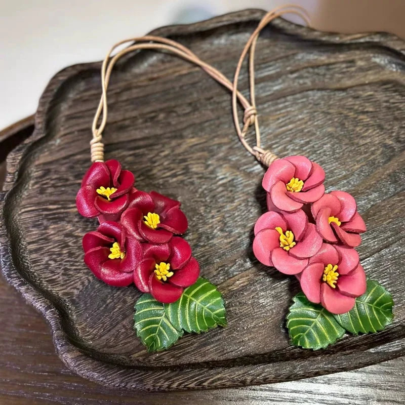 Blooming Peach Blossom Leather Bag Charm – Handmade Multi-Flower Pendant in Full-Grain Leather | Lifelike Floral Accessory with Leaves | Elegant Keychain or Handbag Ornament