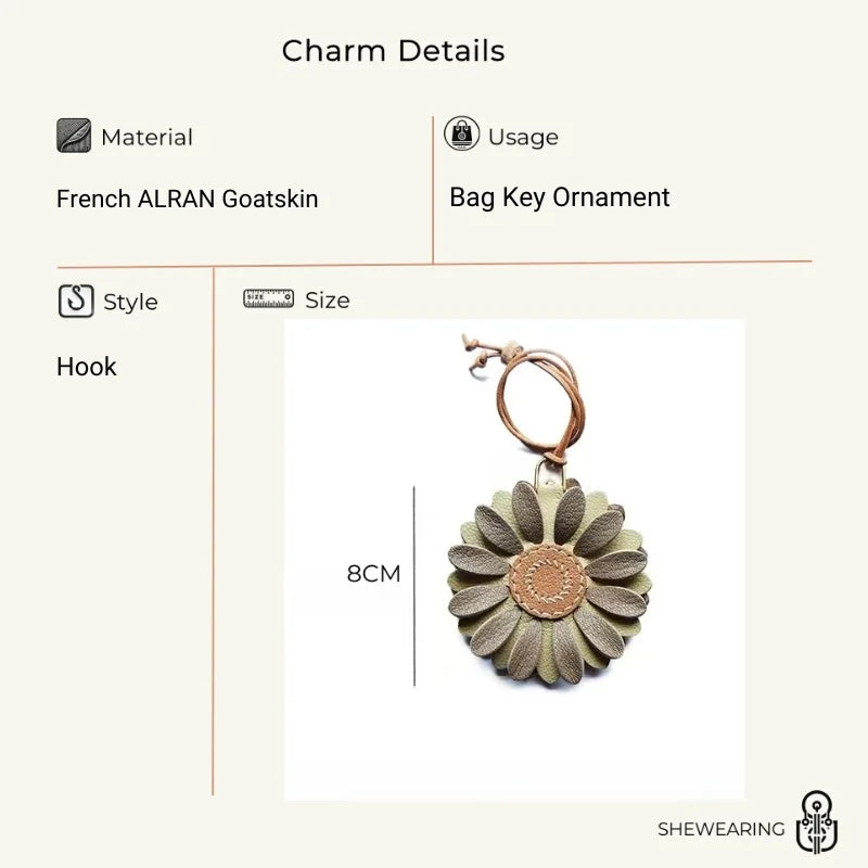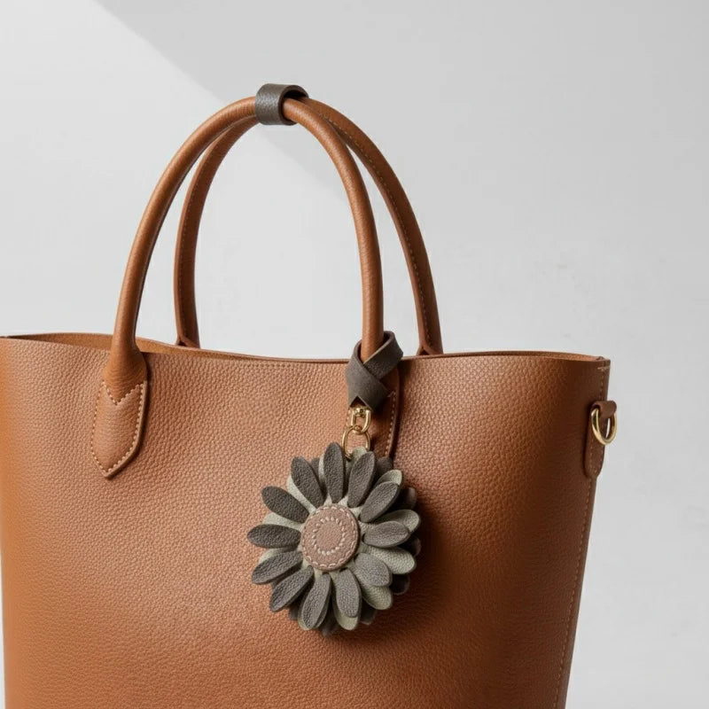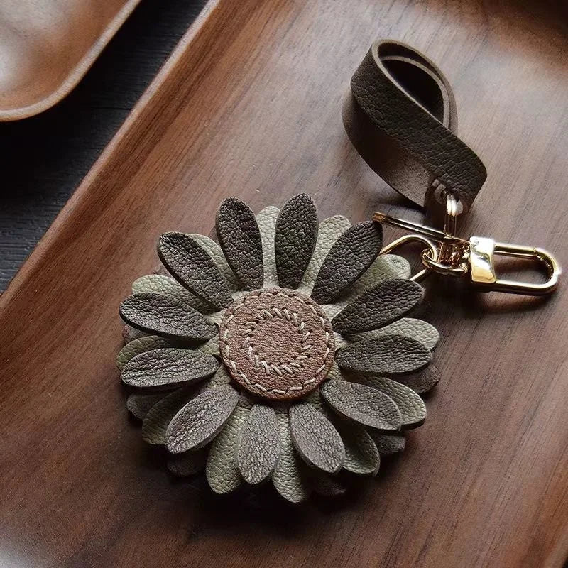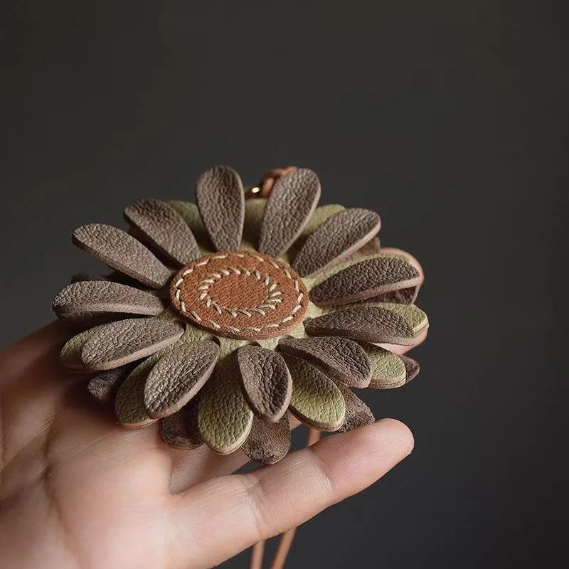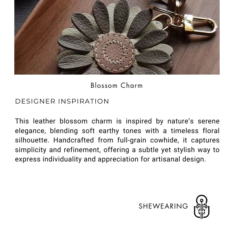 Blossom Leather Bag Charm – Handmade Full-Grain Cowhide Floral Pendant | Minimalist Artistic Keychain | Elegant Gift for Handbags & Cars