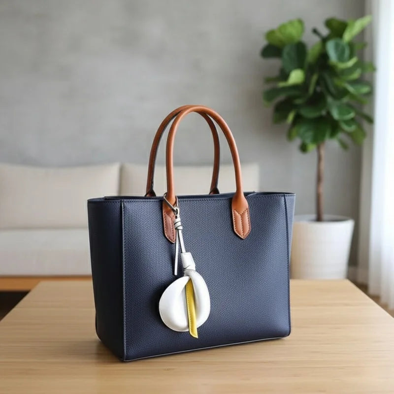 This versatile charm can be used as a bag accessory, a keychain, or a thoughtful gift. Its lightweight yet durable design ensures it adds style without bulk, while the secure metal clasp makes it easy to attach to handbags, totes, or keys. Available in multiple colors, the charm complements a variety of styles, from classic to contemporary, adding a refined touch to everyday ensembles.