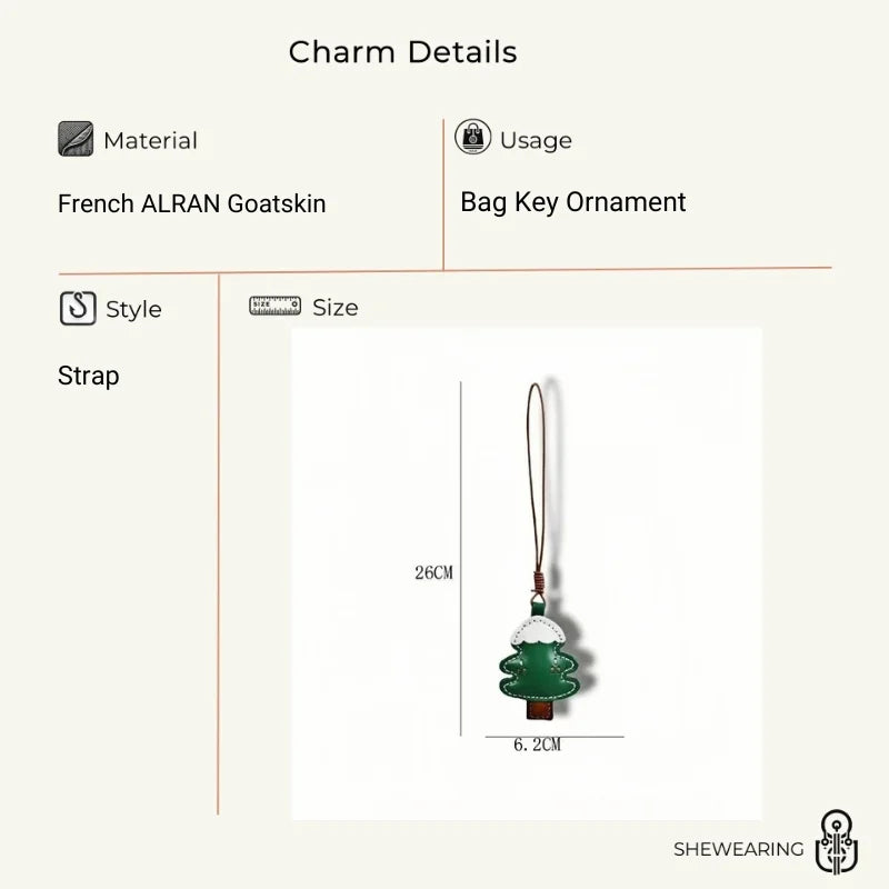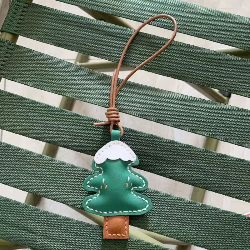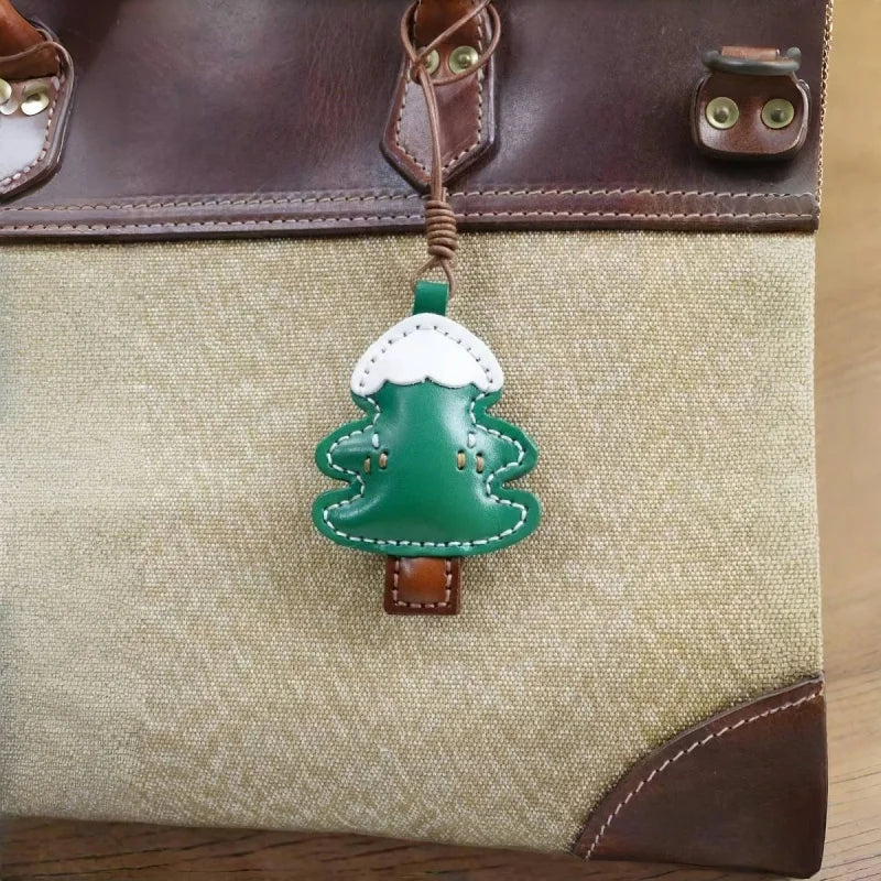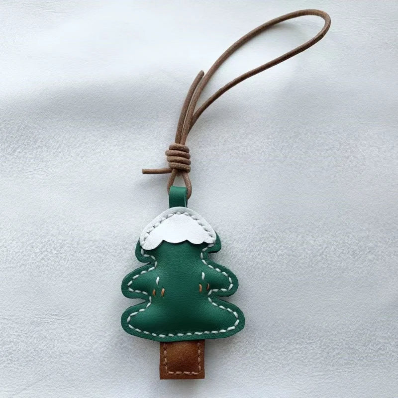 Celebrate the holiday spirit all year round with this exquisite Christmas Tree Leather Bag Charm. Crafted from premium full-grain cowhide, the charm offers a supple, durable texture that only improves with time. The design features a lush green tree topped with snow, paired with a natural leather trunk and highlighted by meticulous hand-stitching. Its vintage aesthetic makes it a unique accessory for handbags, totes, or even as a keychain. Measuring approximately 6.2 cm in width with a 26 cm hanging strap, it is the perfect size to add charm without overwhelming your bag. This piece captures both craftsmanship and festive character, making it an ideal seasonal gift or a timeless collectible. Whether worn in winter or kept as a year-round symbol of warmth and joy, the Christmas Tree Bag Charm brings a touch of nostalgia and artisanal elegance to your everyday style.