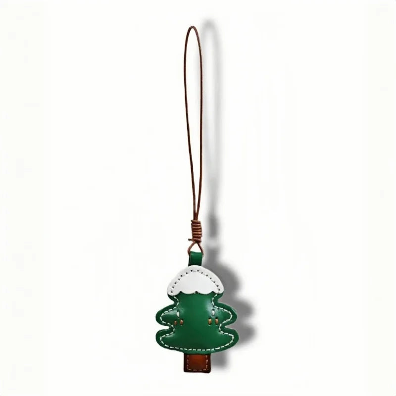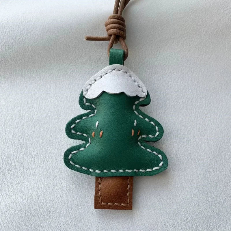 Christmas Tree Leather Bag Charm – Handmade Full-Grain Cowhide Pendant | Vintage Festive Keychain | Classic Holiday Gift for Handbags