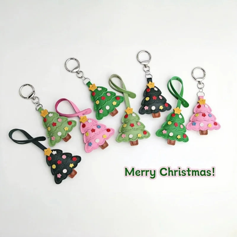 Christmas Tree Leather Bag Charm – Handmade Sheepskin Pendant | Festive Holiday Accessory | Hand-Stitched Keychain & Handbag Ornament