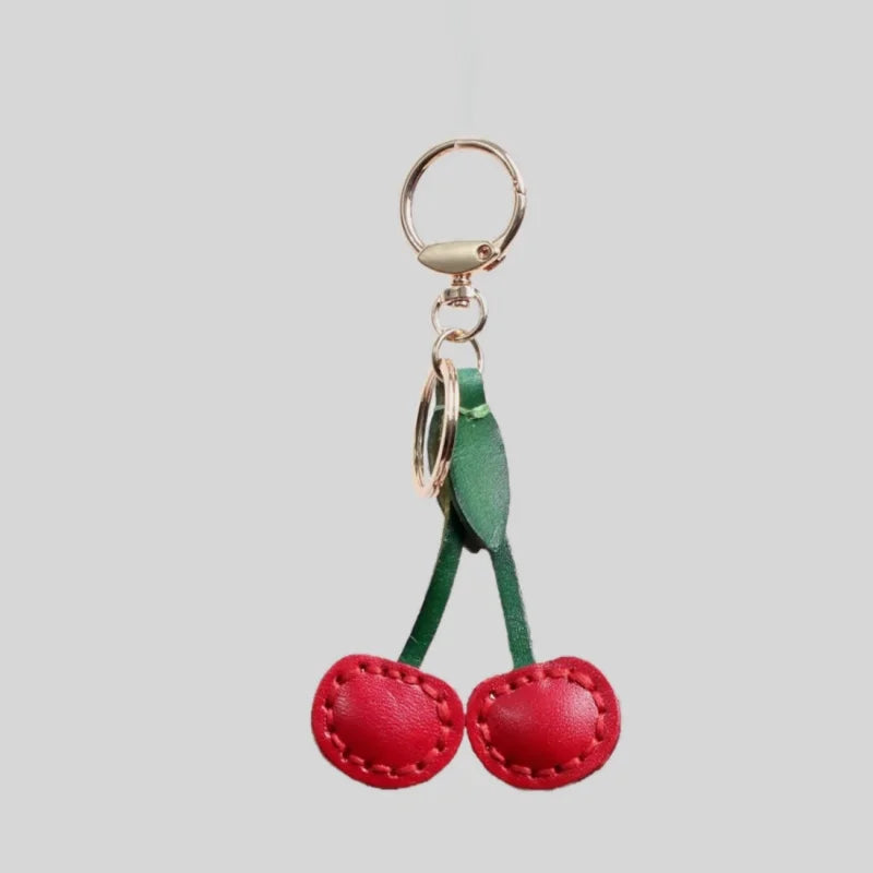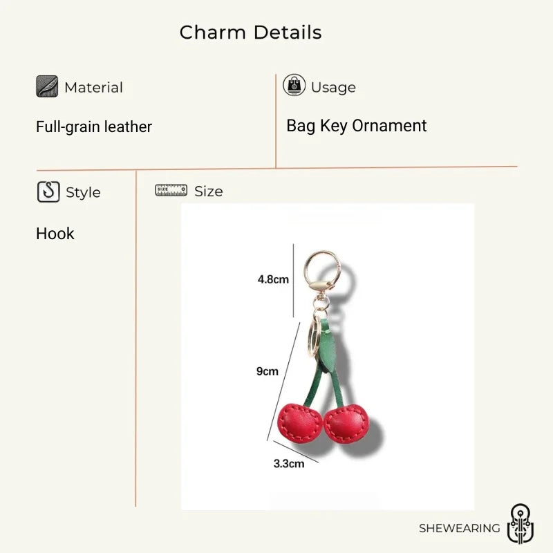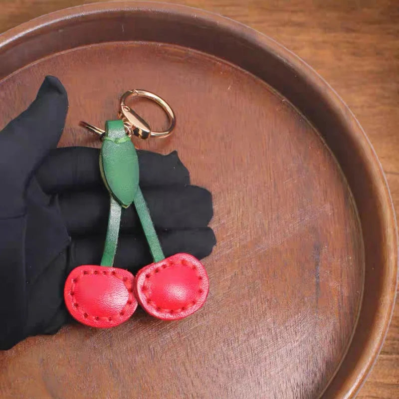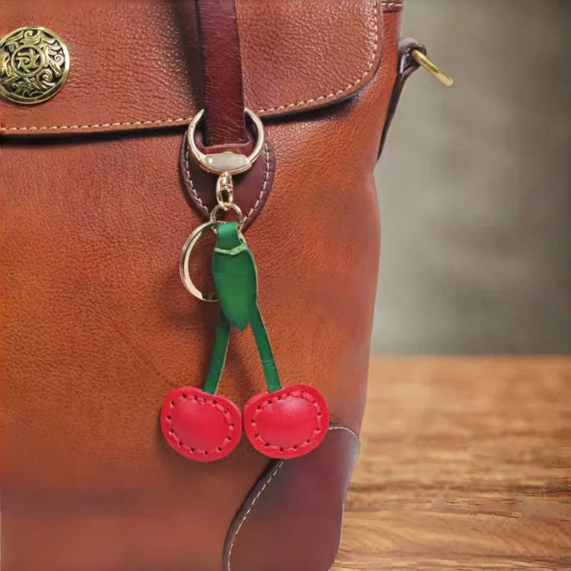 Classic Cherry Leather Bag Charm – Handmade Full-Grain Cowhide Pendant | Artisan Double-Cherry Keychain | Whimsical Accessory for Handbags & Gifts