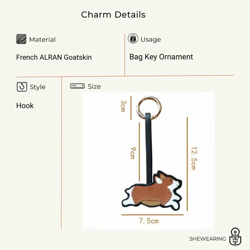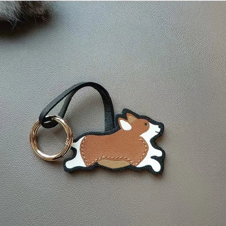 Corgi Leather Bag Charm – Handmade French Sheepskin Keychain | Playful Dog-Inspired Pendant | Whimsical Gift for Pet Lovers