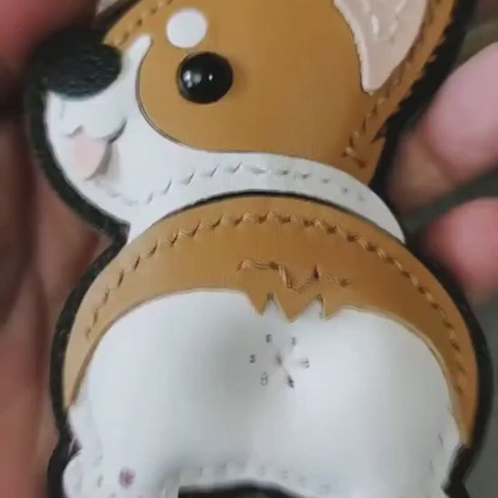 Corgi Pet Leather Bag Charm Hand-Stitched Leather Accessory Creative Keychain Pendant Cute Gift for Women