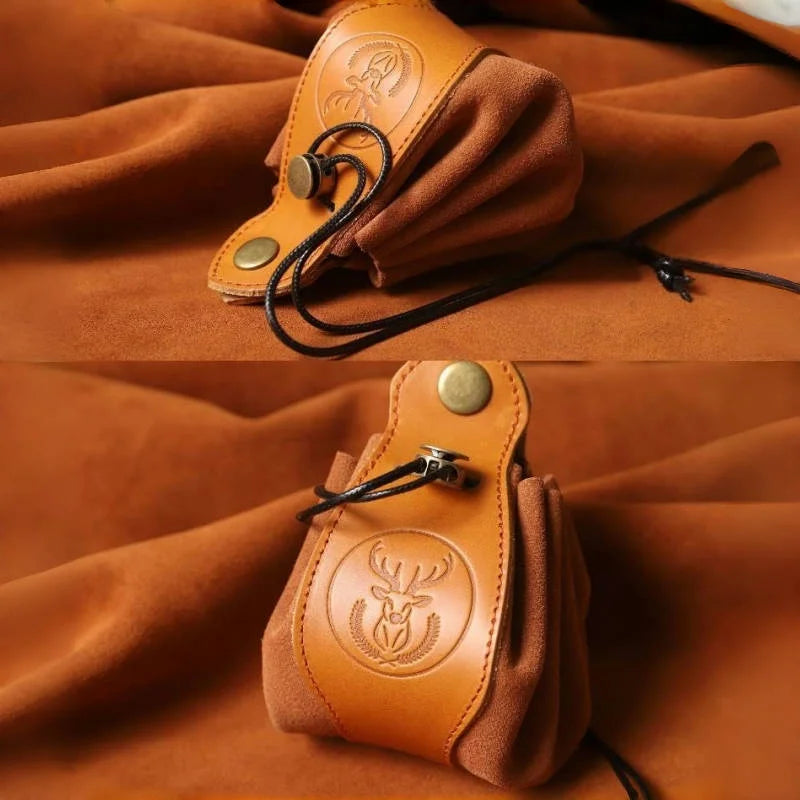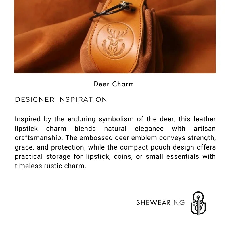 Crafted from premium full-grain leather, this Deer Emblem Leather Lipstick Charm is a perfect fusion of artistry and practicality. Featuring a finely embossed deer motif, the design reflects natural beauty and symbolic strength, making it more than just an accessory—it is a statement piece. Measuring approximately 14 cm in height and 8 cm in width, the pouch is compact yet versatile, ideal for storing lipstick, coins, earbuds, or other small essentials. Its durable leather construction ensures longevity, while the drawstring closure provides secure and easy access. With meticulous hand-stitching and a rustic finish, it embodies slow-living values and artisan dedication. Suitable for both men and women, this leather charm doubles as a thoughtful gift, blending refined design with functional everyday use. Whether attached to a handbag, used as a key holder, or carried alone, it adds a touch of elegance and heritage-inspired character to any lifestyle.