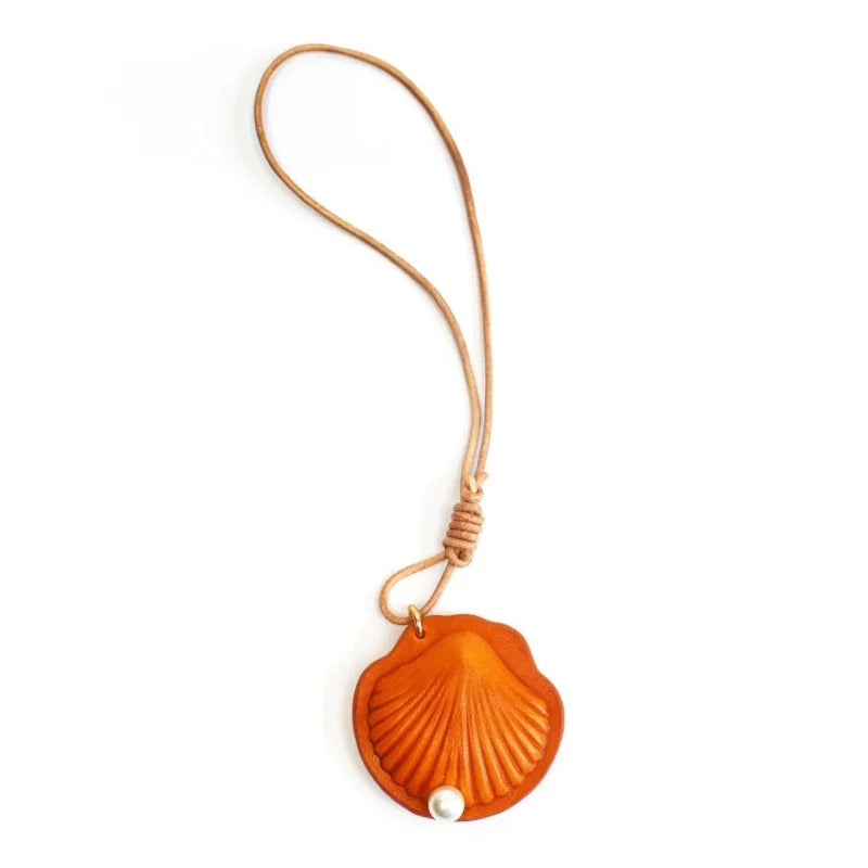 Introduce a touch of classic, nautical elegance to your collection with The Scallop Pearl Charm. Handcrafted from premium full-grain cowhide, this charm features a beautifully pressed shell motif that delivers stunning, dimensional detail. The double-sided design ensures a flawless look from any angle, making it an exquisite companion for any high-end handbag.