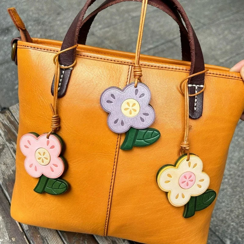 Four-Leaf Clover Leather Bag Charm – Handmade Full-Grain Leather Floral Pendant | Minimal Pastoral Style Handbag Accessory | Lucky Gift for Her