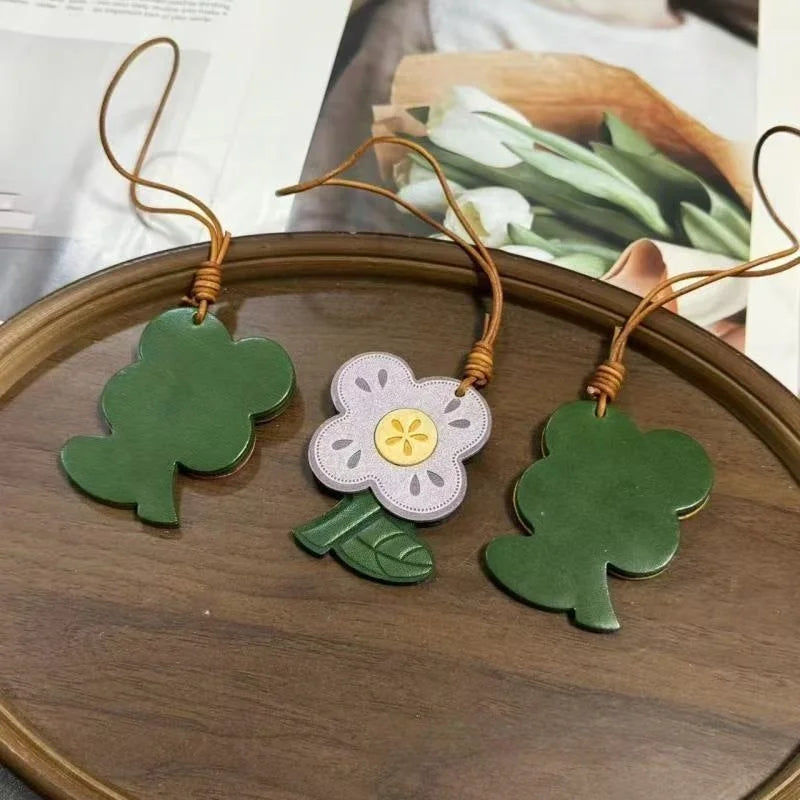 This Four-Leaf Clover Leather Bag Charm is handcrafted from premium full-grain leather, carefully stitched to create a layered floral form with depth and character. Unlike mass-produced accessories, each piece reflects the natural texture and warmth of genuine leather, making every charm subtly unique.