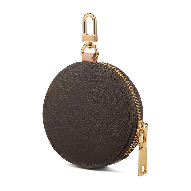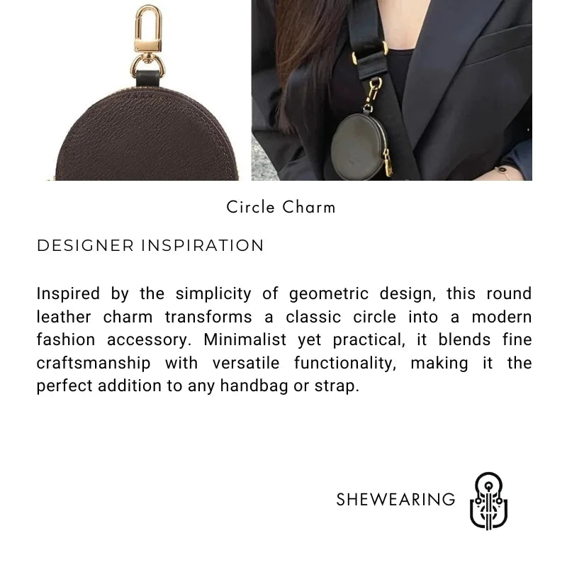 Genuine Leather Round Mini Bag Charm – Luxury Circle Coin Purse & Lipstick Holder | Elegant Accessory for Handbags & Crossbody Straps