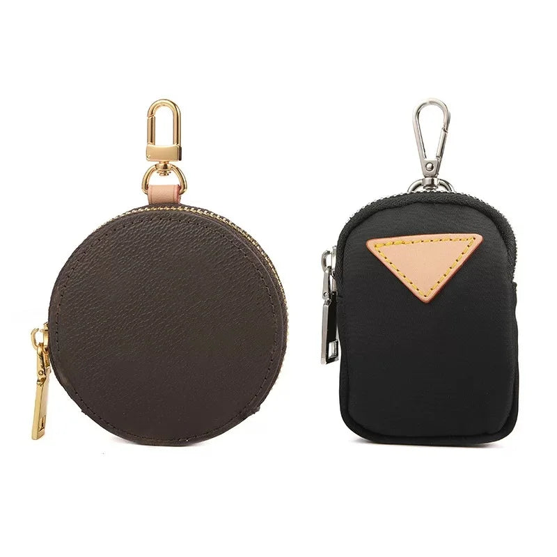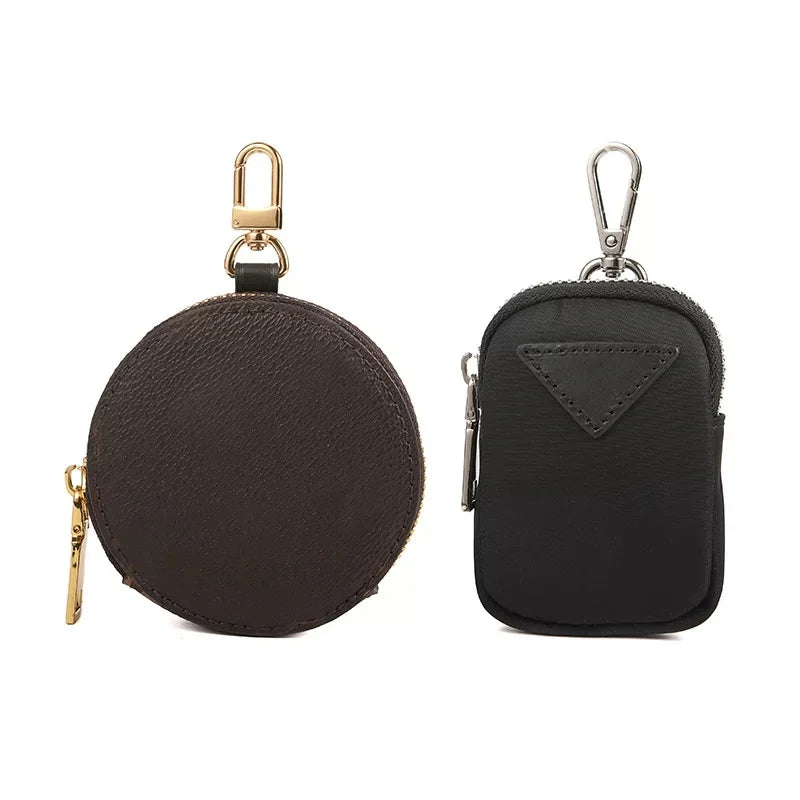 The Genuine Leather Round Mini Bag Charm is a chic and versatile accessory crafted from high-quality cowhide leather. Its smooth texture and durable structure ensure lasting use while maintaining a sophisticated look. Measuring 9 × 9 × 2.5 cm, this compact piece is designed to store small essentials such as lipstick, coins, earbuds, or keys, making it as functional as it is stylish. The charm features a secure gold-tone zipper closure and a polished metal clasp, allowing it to be easily attached to handbags, crossbody straps, or used as a standalone mini purse. Available in classic black and brown leather, as well as nylon fabric variations in sky blue, light yellow, and white, this accessory adapts to any style. Whether carried for everyday convenience or added as a decorative detail, the round charm offers understated luxury with modern practicality.