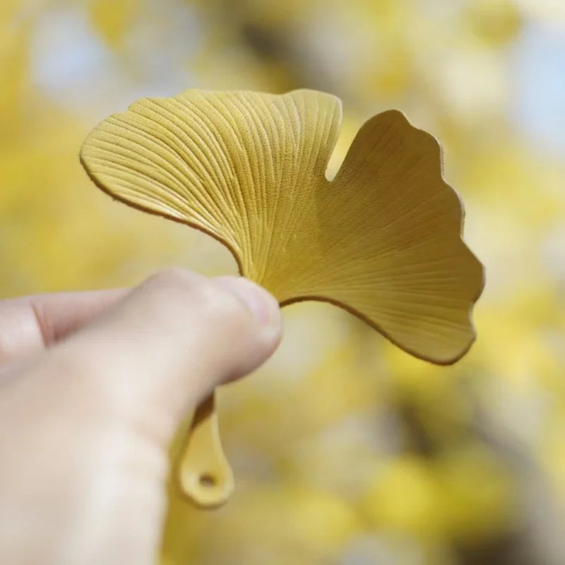 This handcrafted ginkgo leaf leather bag charm is designed for women who appreciate nature-inspired forms and understated elegance. Made from high-quality leather and shaped through detailed hand-carving, each leaf reveals fine vein textures and softly curved edges that mirror the organic beauty of real ginkgo leaves.