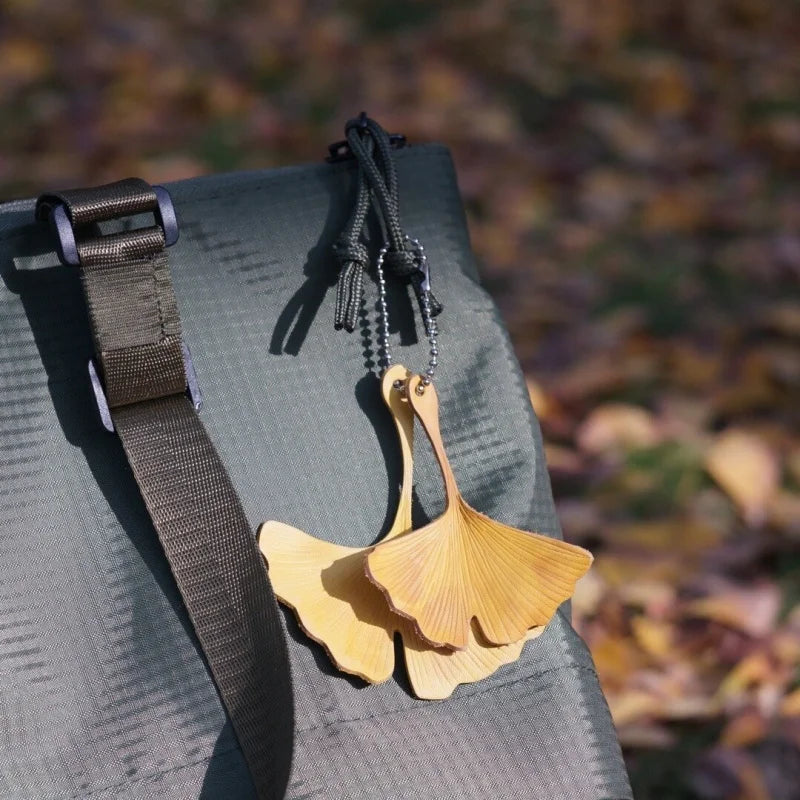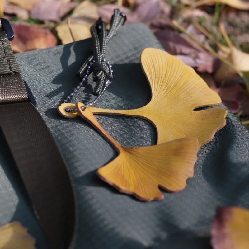Ginkgo Leaf Leather Bag Charm – Hand-Carved Natural Style Pendant | Artisanal Backpack & Handbag Accessory | Elegant Gift for Her