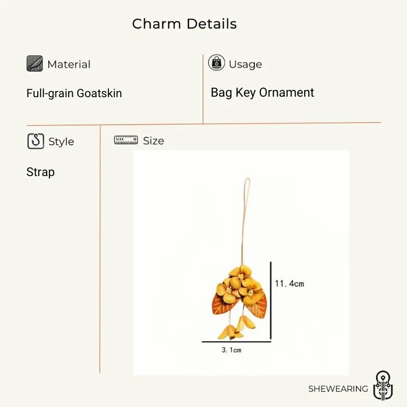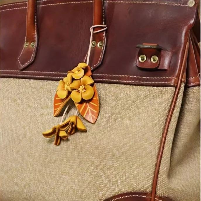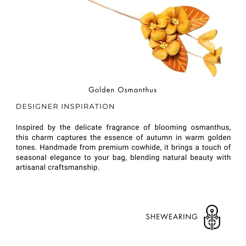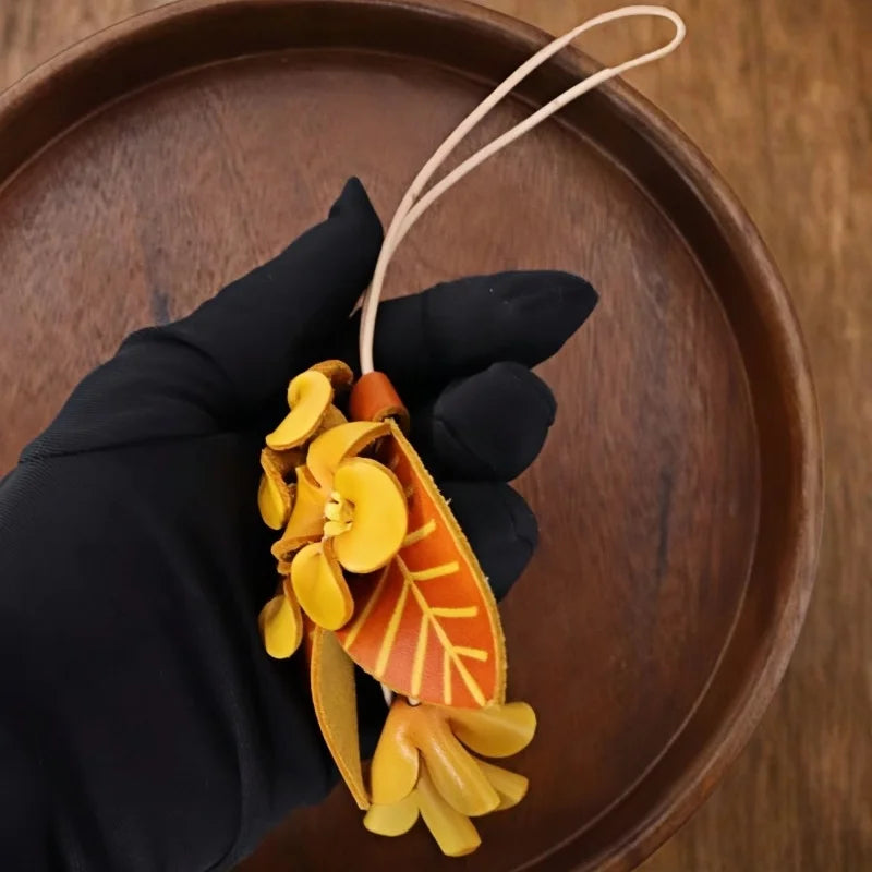 Golden Osmanthus Leather Bag Charm – Handmade Full-Grain Cowhide Floral Pendant | Autumn-Inspired Keychain | Unique Gift Accessory for Women