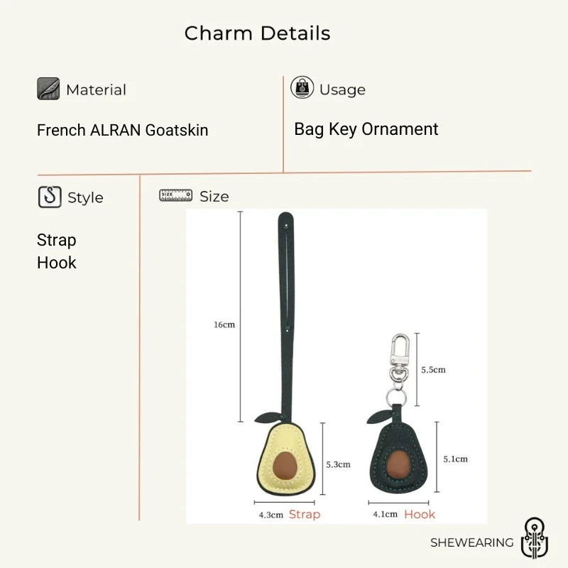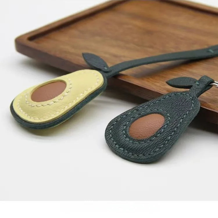 Handcrafted Avocado Leather Bag Charm – Original Design in Full-Grain Sheepskin | Cute Minimalist Pendant for Handbags & Keychains | Handmade Gift for Women