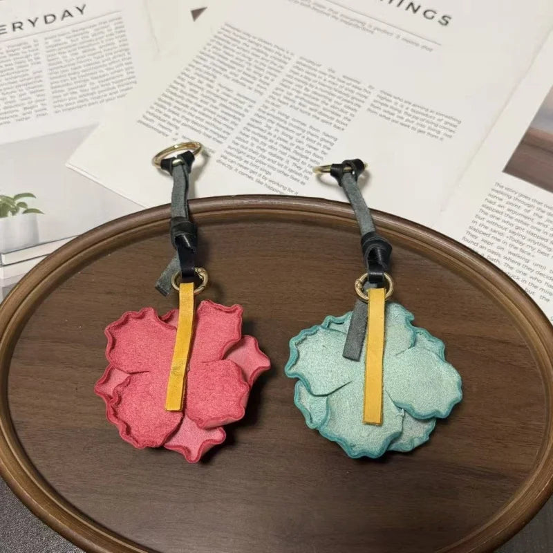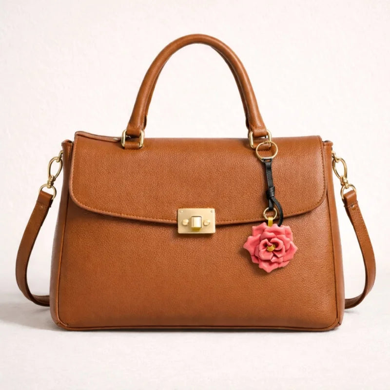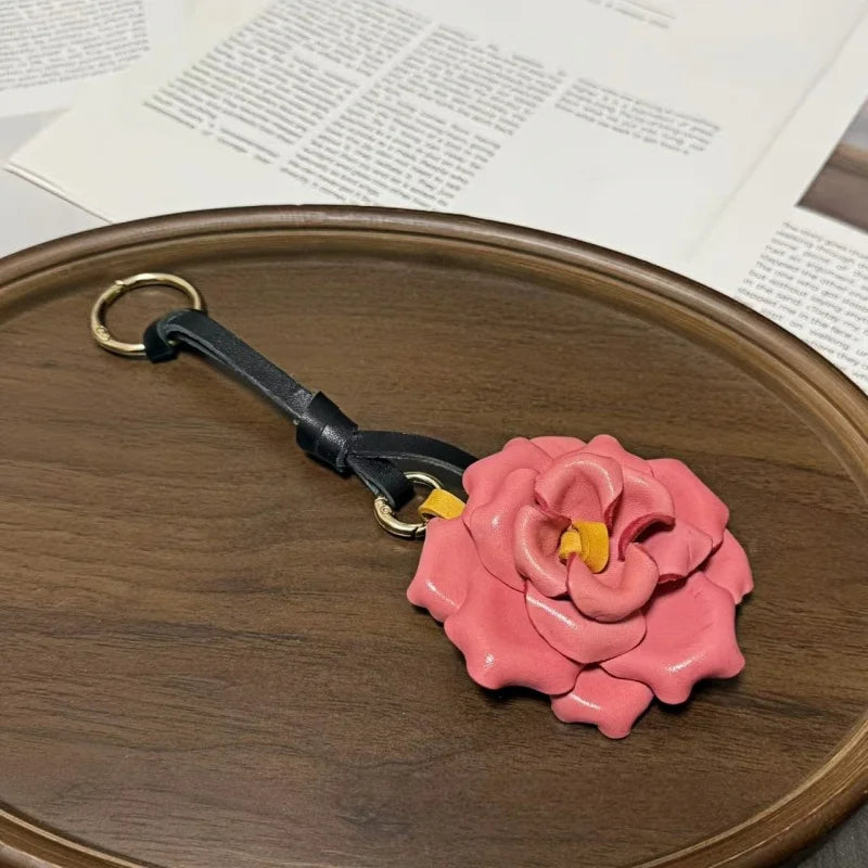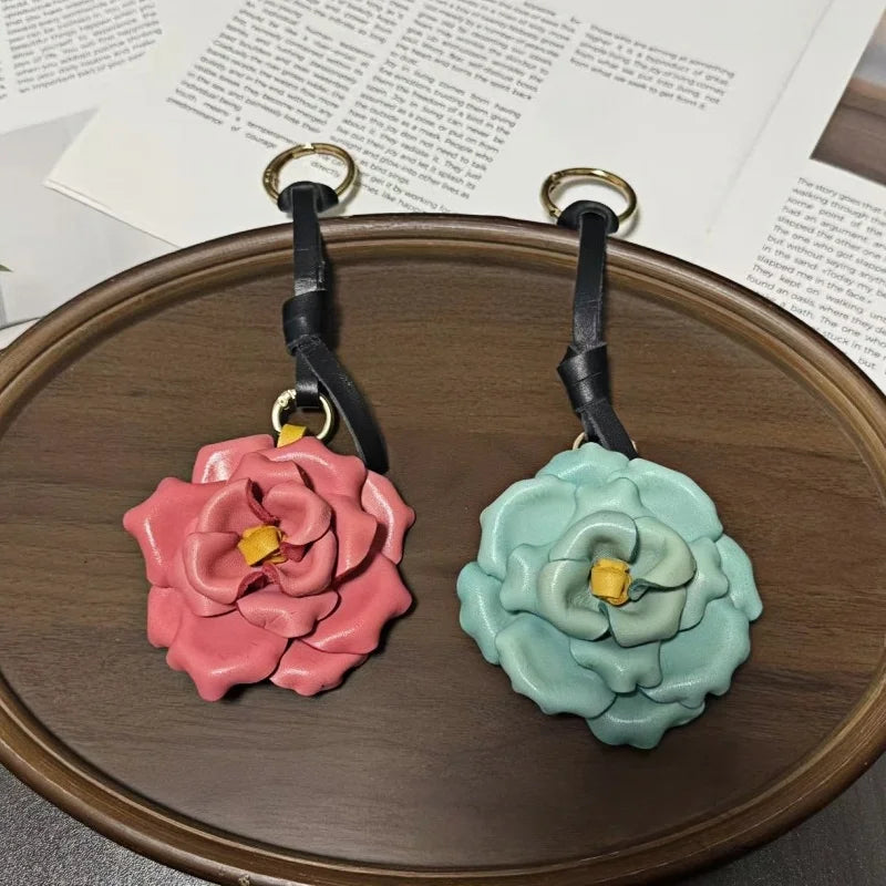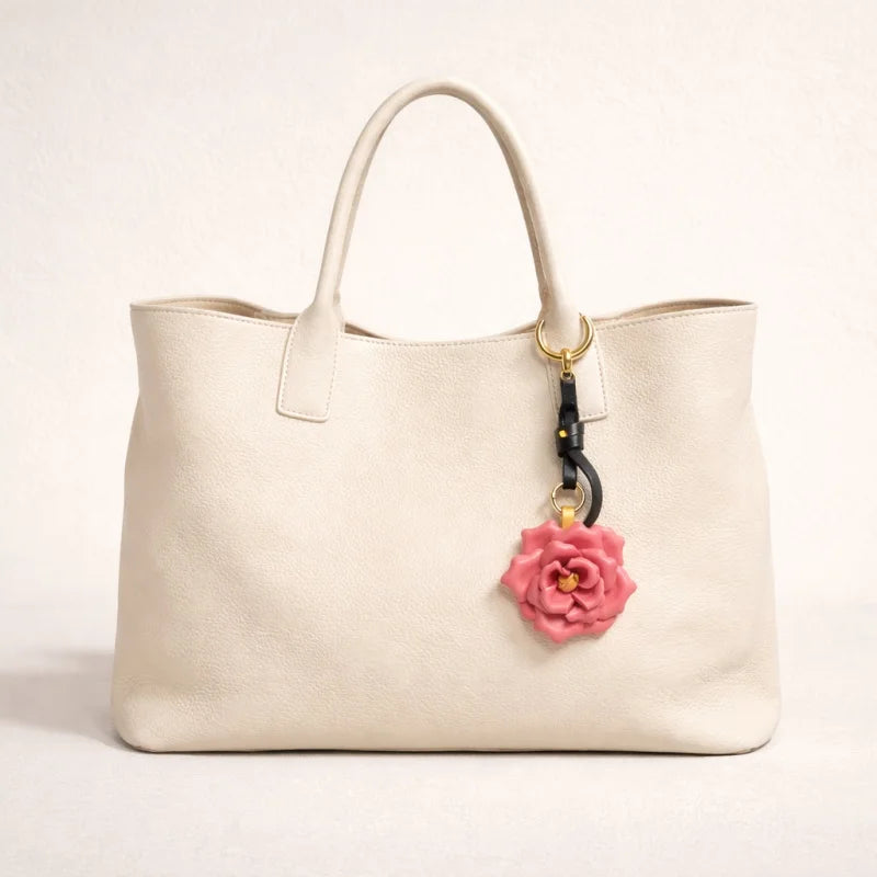 Handcrafted Blooming Rose Leather Bag Charm – Full-Grain Cowhide 3D Floral Pendant | Elegant Countryside-Inspired Handbag Accessory