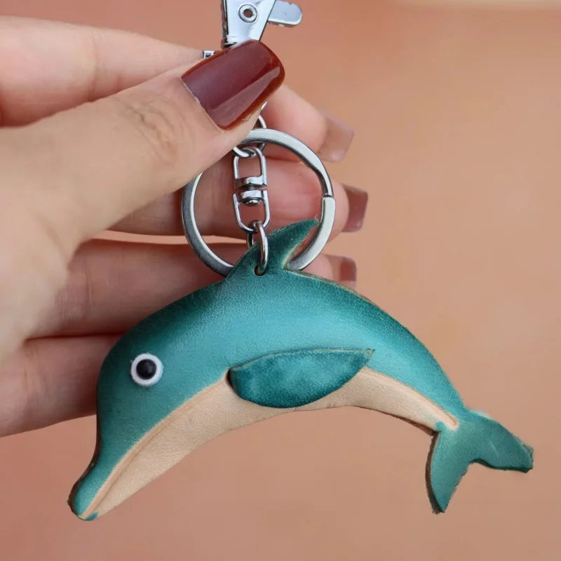 Handcrafted Leather Dolphin Bag Charm – Premium Cowhide Keychain | Minimal Ocean-Inspired Accessory | Artisan Gift for Her