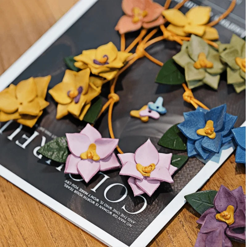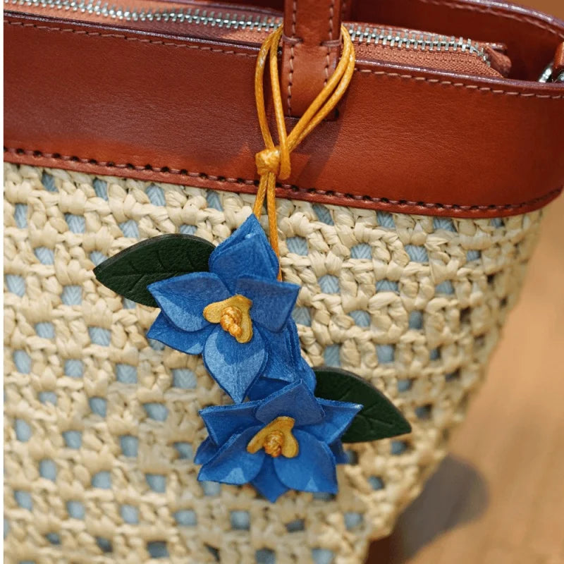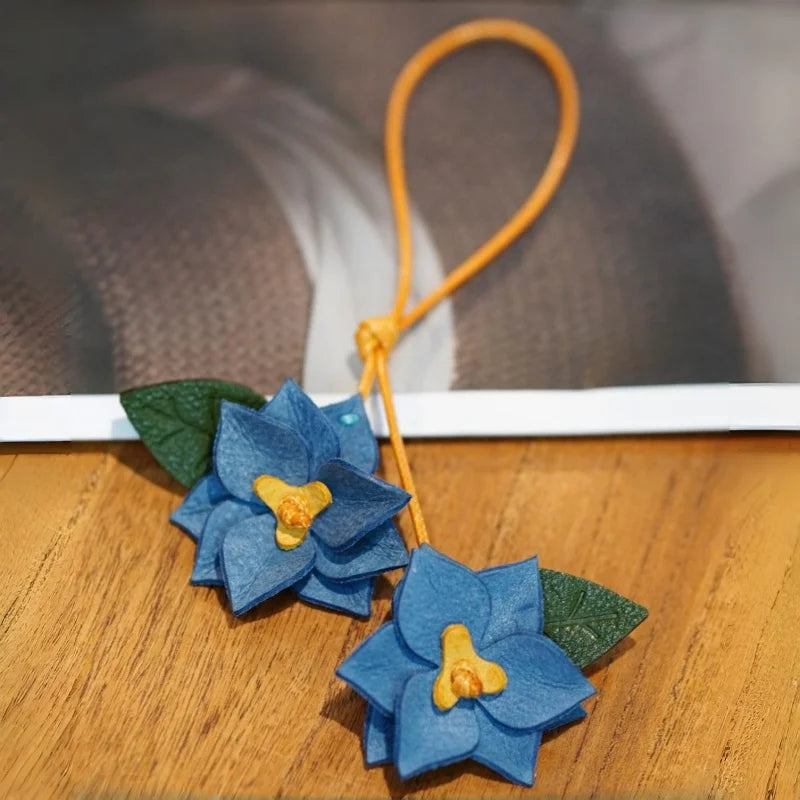 Crafted from premium waxed cowhide leather, this double-flower bag charm brings a sculptural floral presence to your handbag. Each petal is individually cut, layered, and shaped by hand, creating natural depth and dimension. The soft waxed finish enhances texture while allowing the leather to develop a gentle patina over time.