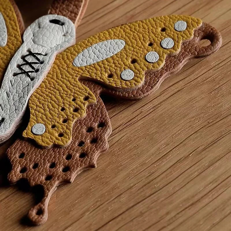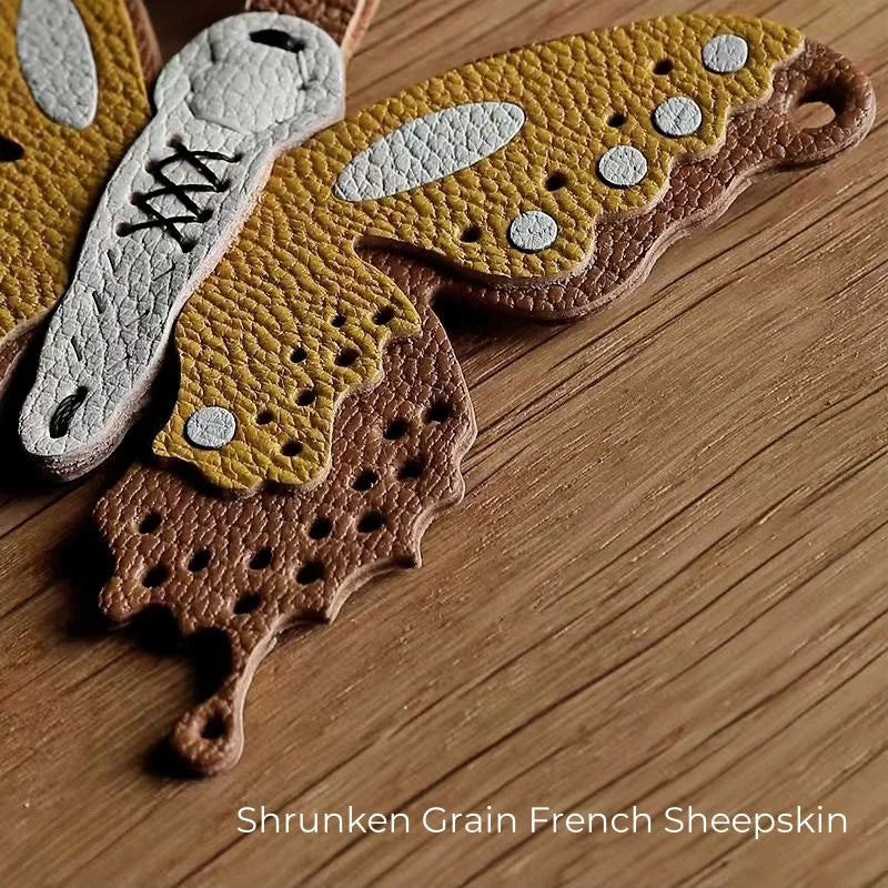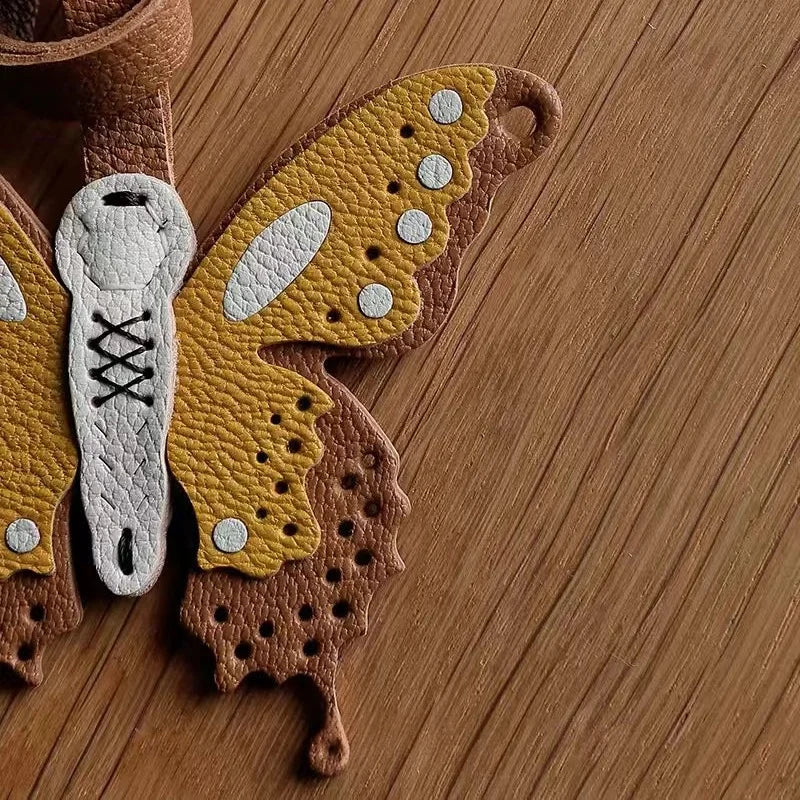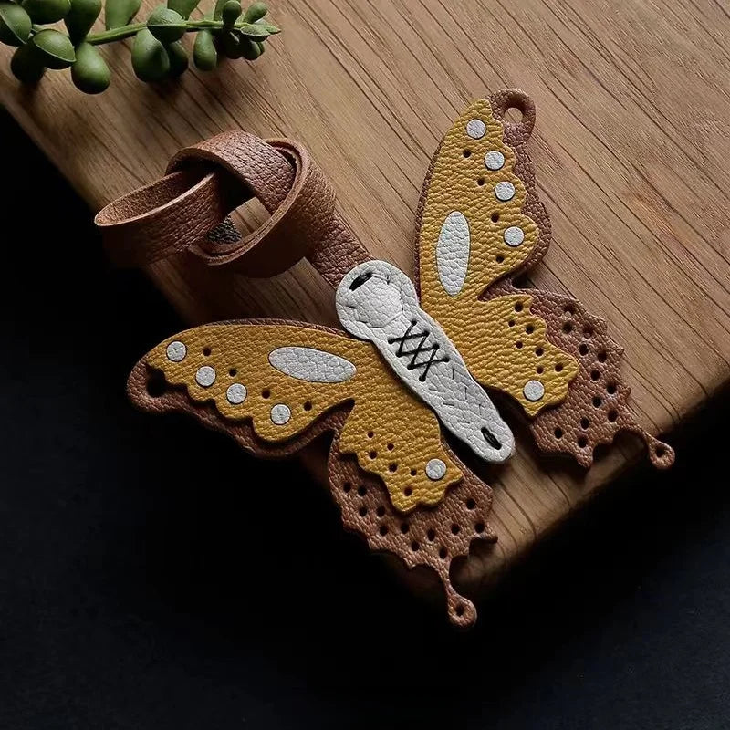 Handmade Leather Butterfly Bag Charm – Artisan Sheepskin Pendant & Keychain | Intricate Cutout Design | Luxury Handbag Accessory & Couple Gift