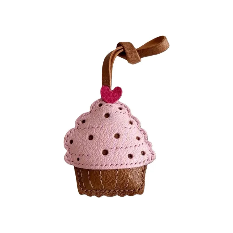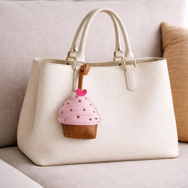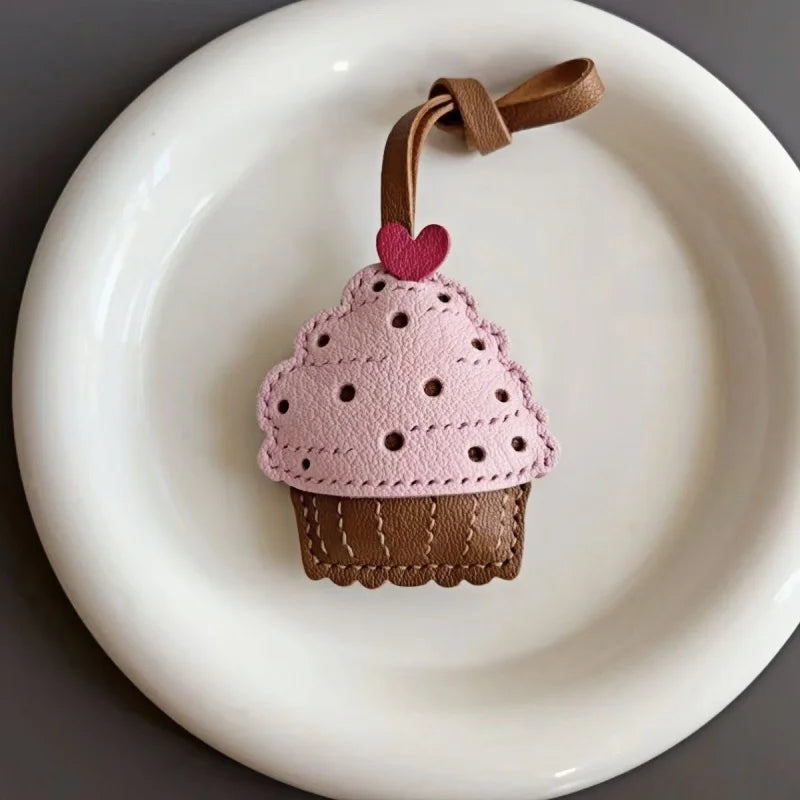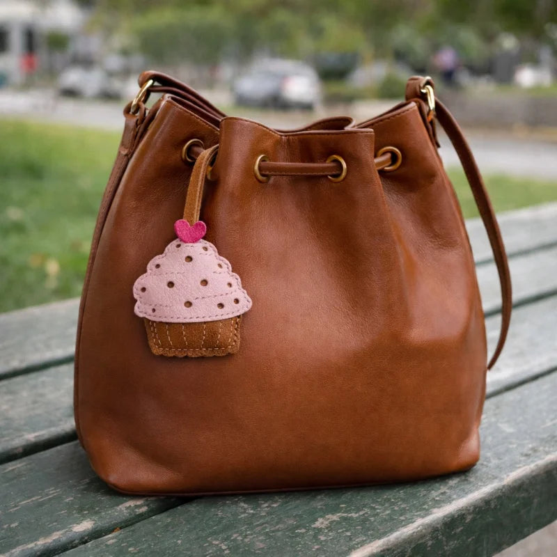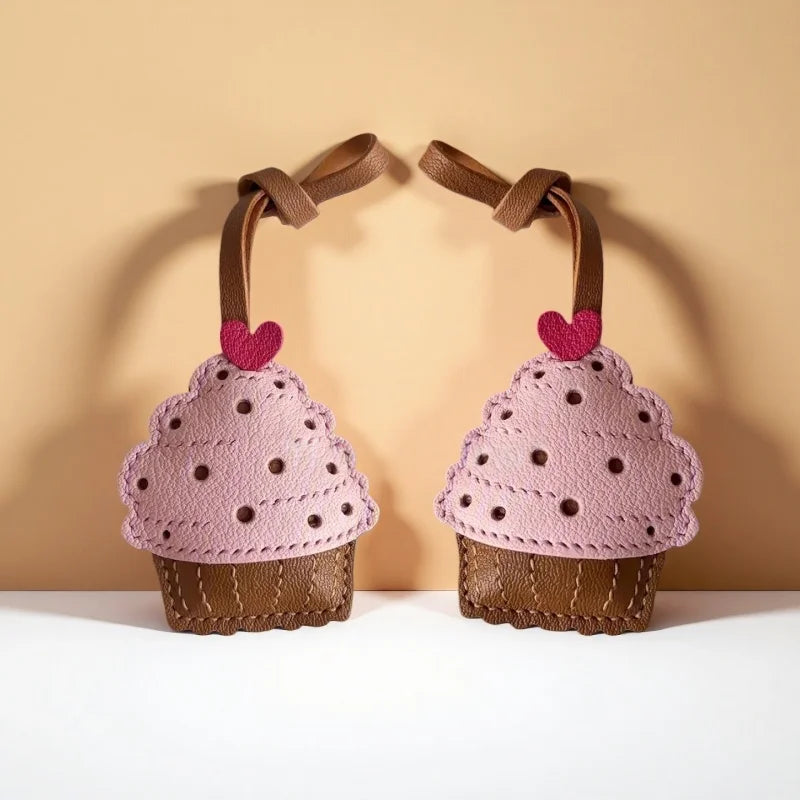 Handmade Leather Cupcake Bag Charm – Handcrafted Genuine Leather Pendant & Keychain | Cute Artistic Accessory for Handbags | Thoughtful Gift for Her