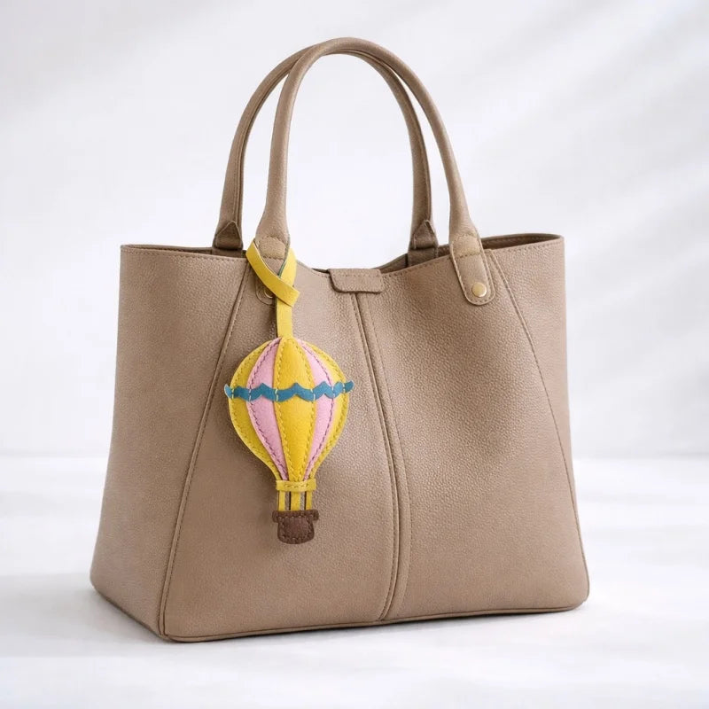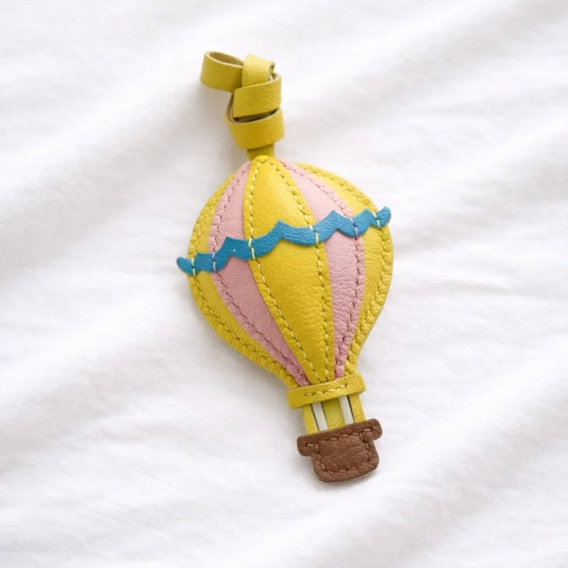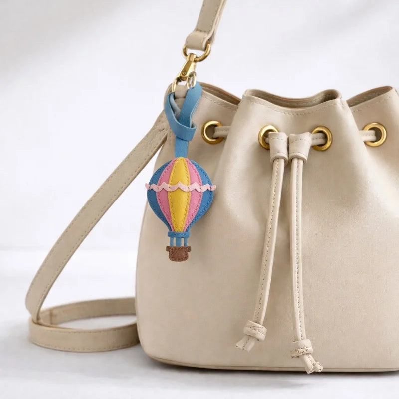 This handmade leather hot air balloon bag charm is a refined expression of lightness, individuality, and slow craftsmanship. Made from carefully selected genuine leather, each charm is cut, layered, and hand-stitched to create a softly sculpted silhouette with subtle depth and texture. The balloon form feels playful yet composed—designed to add character without appearing childish.