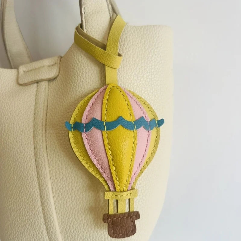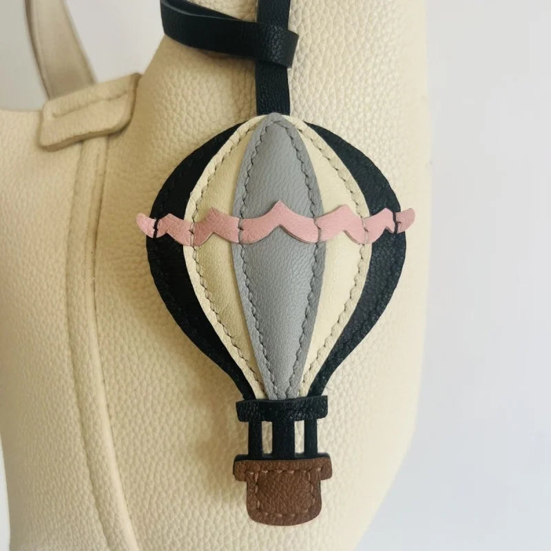 Handmade Leather Hot Air Balloon Bag Charm & Keychain – Artisan Leather Pendant with Soft Color Blocking | Three Color Options | Gift for Her