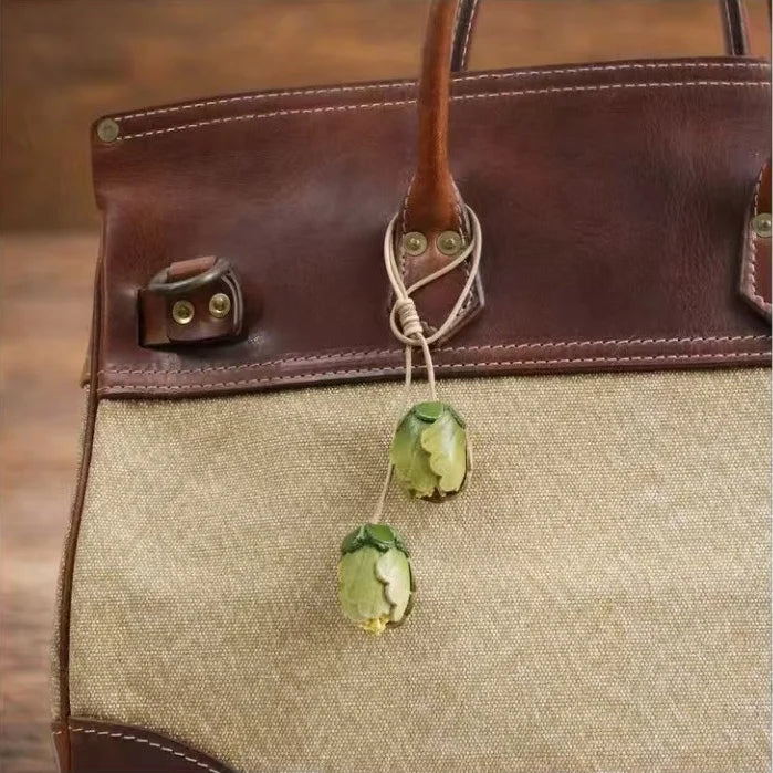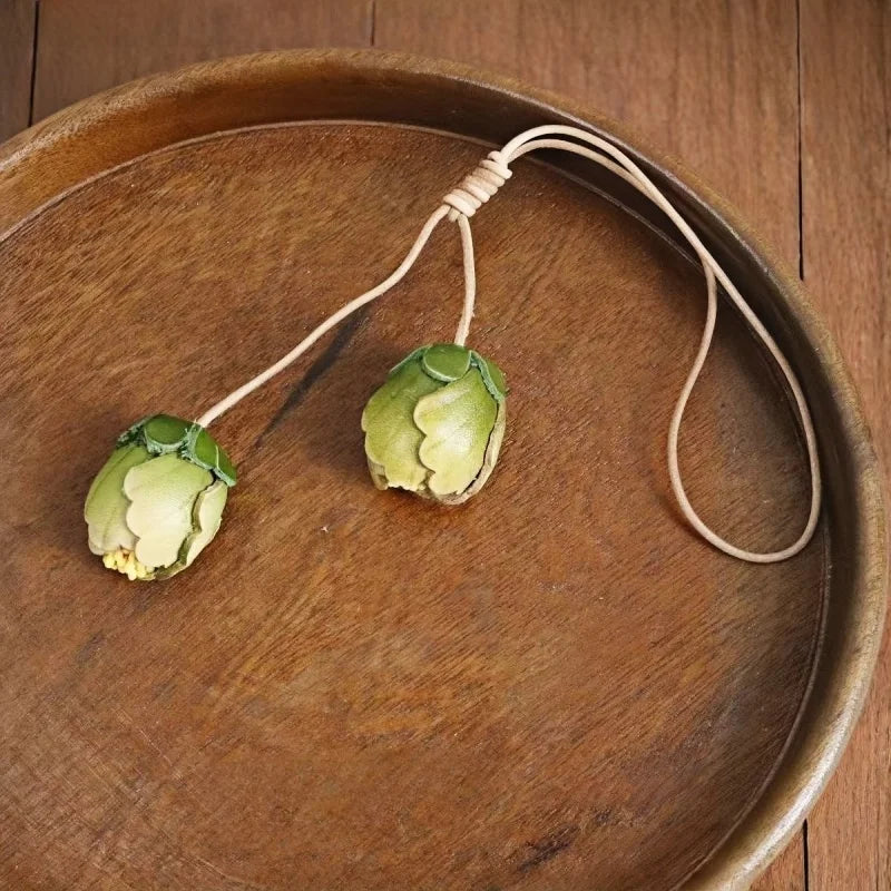 Handmade Tulip Bud Leather Bag Charm – Full-Grain Cowhide Pendant | Artisan Floral Keychain | Unique Leather Handbag Decoration