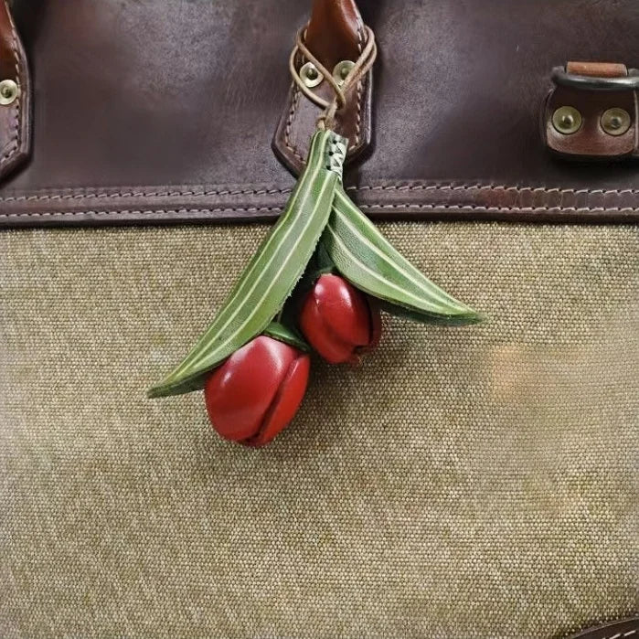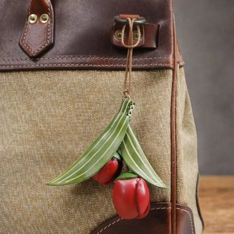 Handmade Tulip Leather Bag Charm – Full-Grain Cowhide Flower Pendant | Artisan Handcrafted Accessory | Unique Leather Handbag Decoration