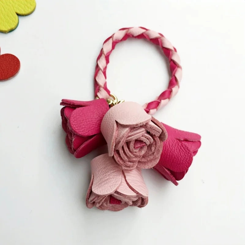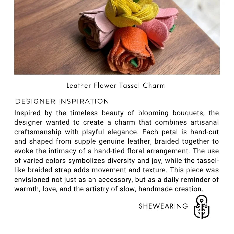 Handwoven DIY Genuine Leather Tassel Floral Bag Charm – Versatile Gift Accessory