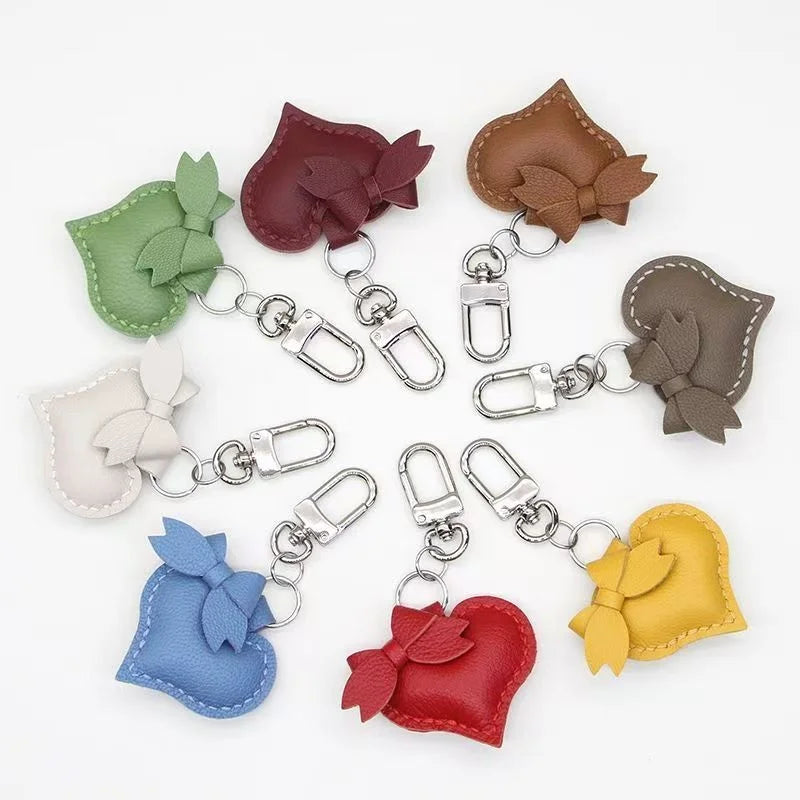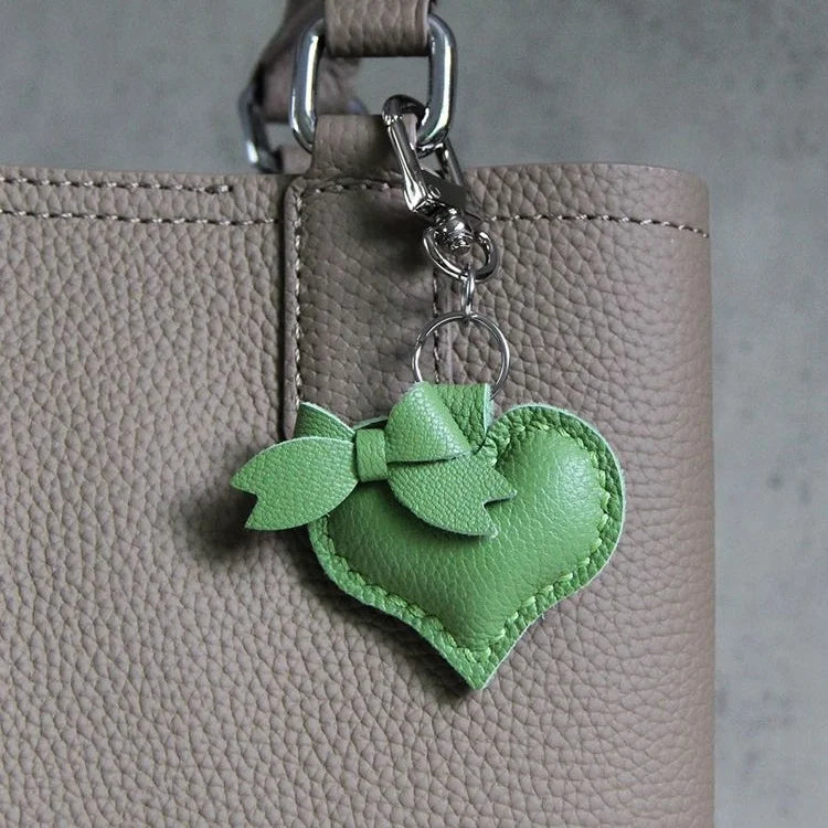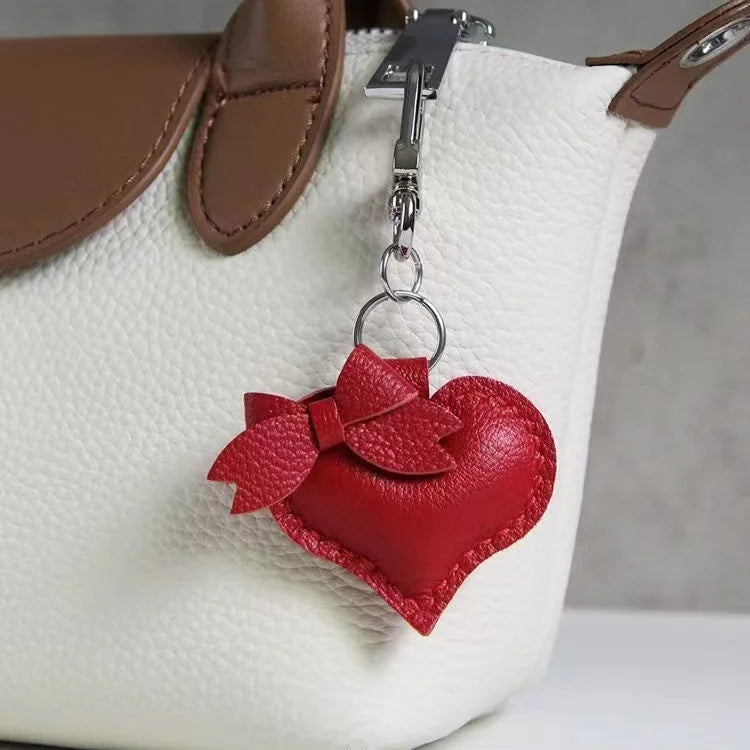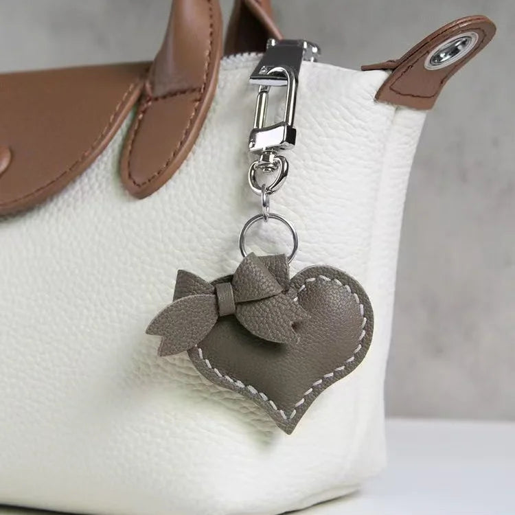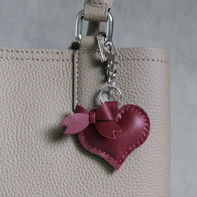 Heart-Shaped Bow Tie Leather Bag Charm | Minimalist Design | Handcrafted | Versatile and Elegant Gift Hook Style