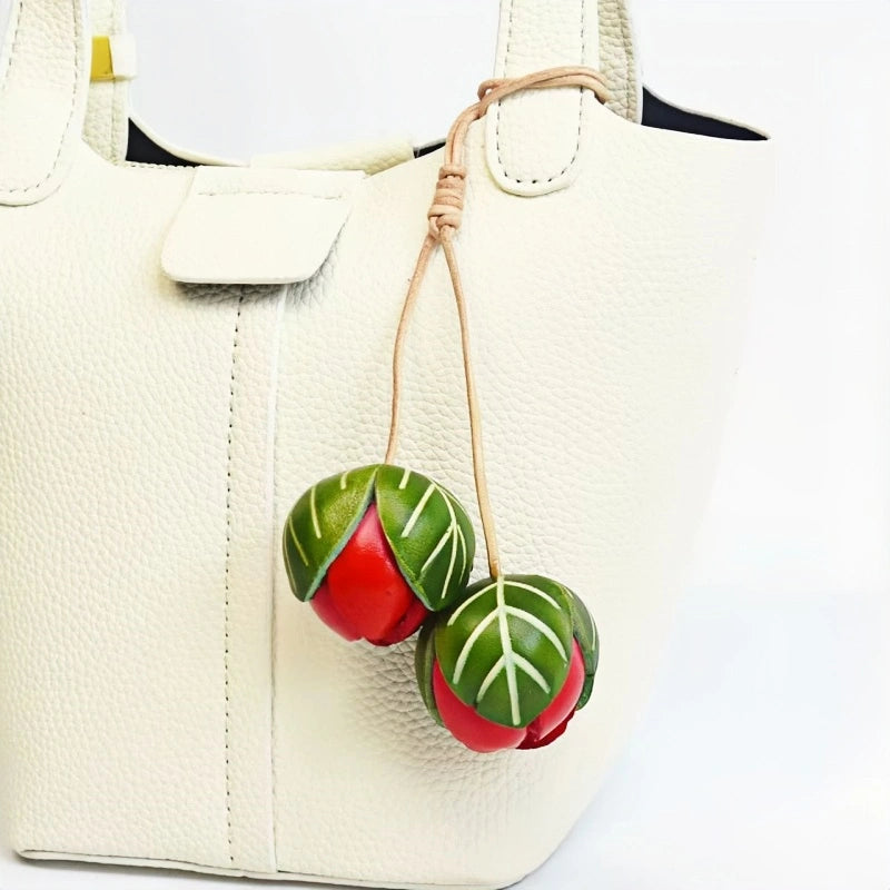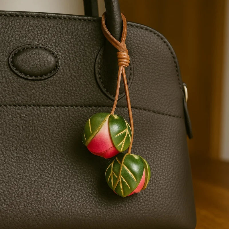 Its soft yet structured shape hangs gracefully from a durable leather cord, making it easy to attach to handbags, backpacks, or use as a whimsical keychain. Measuring approximately 21 cm in length, it’s the perfect size for adding elegance without overwhelming your accessories. Whether as a gift or a personal statement, this charm invites you to slow down and savor the moment — a delicate bloom that never fades.