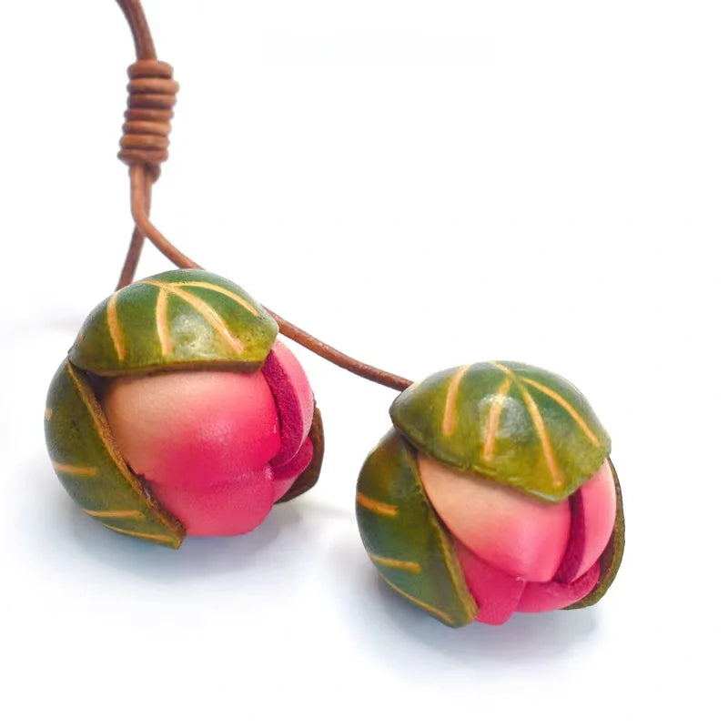 Crafted with precision and soul, the Joyful Bloom Leather Bag Charm is a celebration of nature’s quiet beauty. Designed to resemble a blossoming flower nestled within lush leaves, this unique piece is hand-molded from full-grain cowhide leather and dyed in layers of pink, green, and blush. The organic color gradients and dimensional sculpting create a life-like floral effect that’s both eye-catching and meaningful.