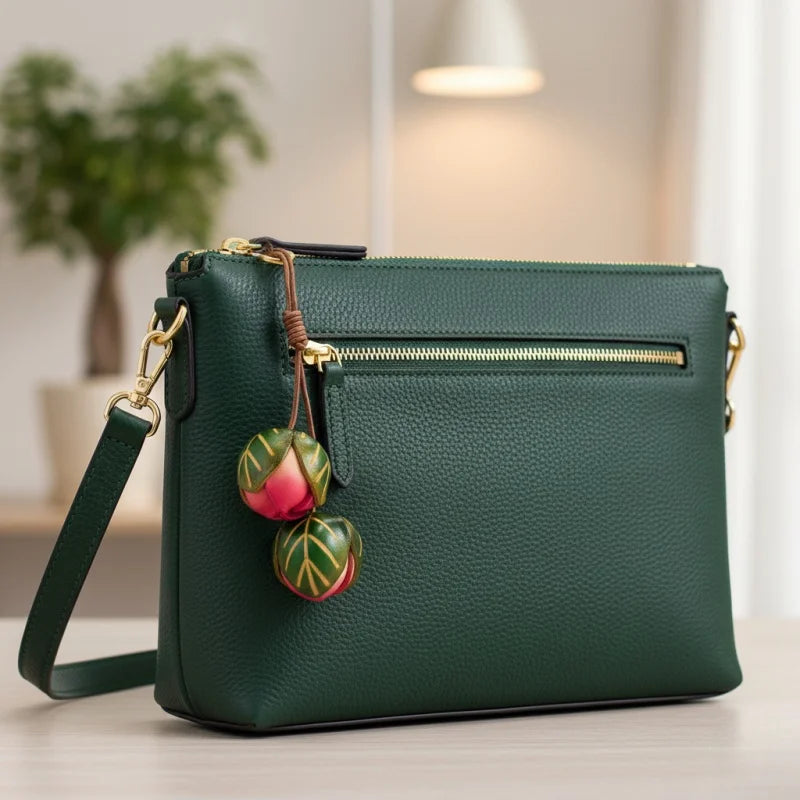 Joyful Bloom Leather Bag Charm – Handmade Full-Grain Leather Flower Pendant | Botanical-Inspired Keychain | Unique Gift & Handbag Accessory