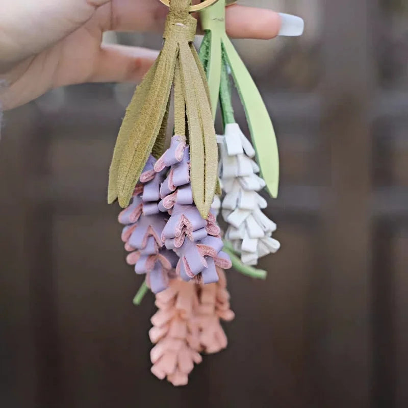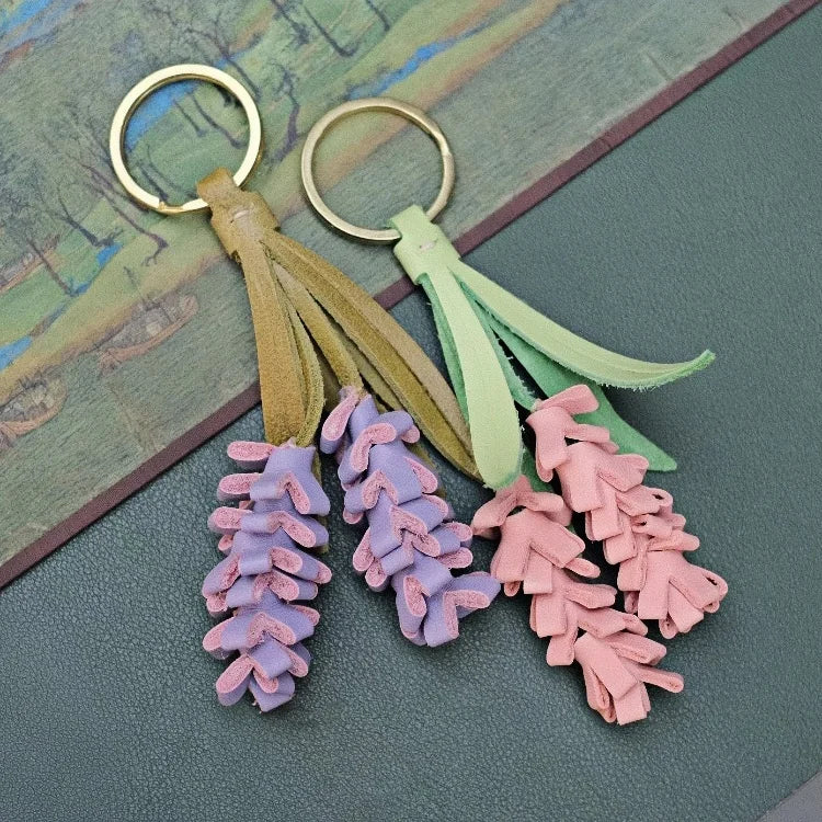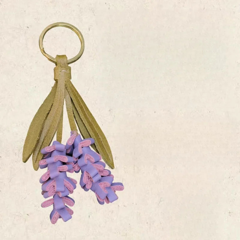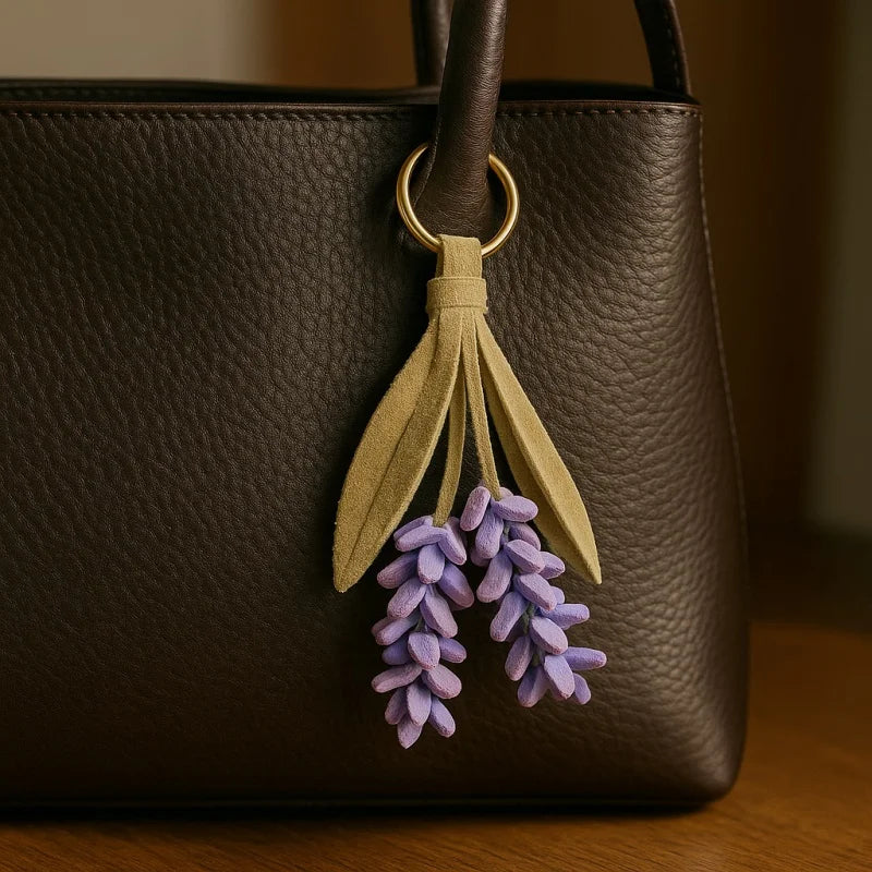 Inspired by fields of lavender swaying in the breeze, this handcrafted leather charm turns a familiar flower into a soft, wearable sculpture. Made from full-grain cowhide, each floral strand is carefully hand-cut and assembled to mimic the texture and shape of real lavender blooms.