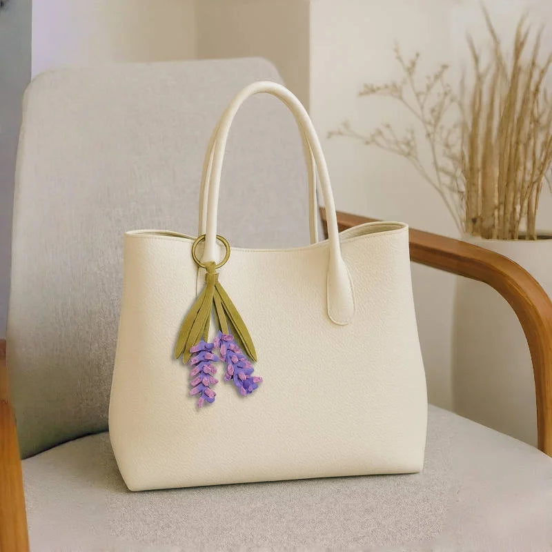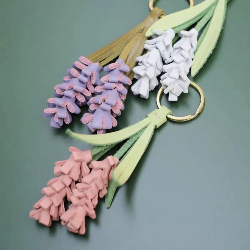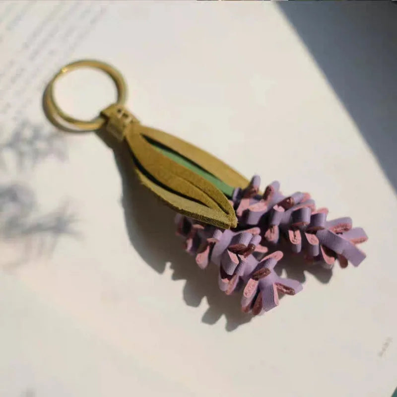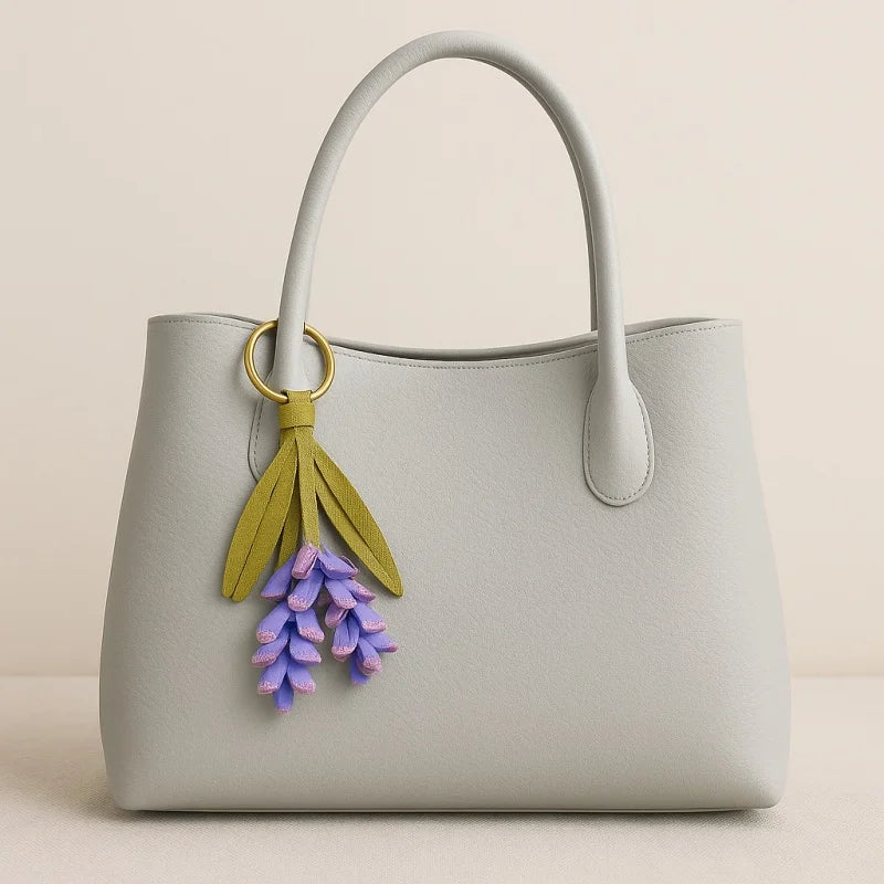 Lavender Blossom Leather Bag Charm – Handcrafted Full-Grain Leather Pendant | Unique Keychain with Botanical Elegance | Artisan Gift for Nature Lovers