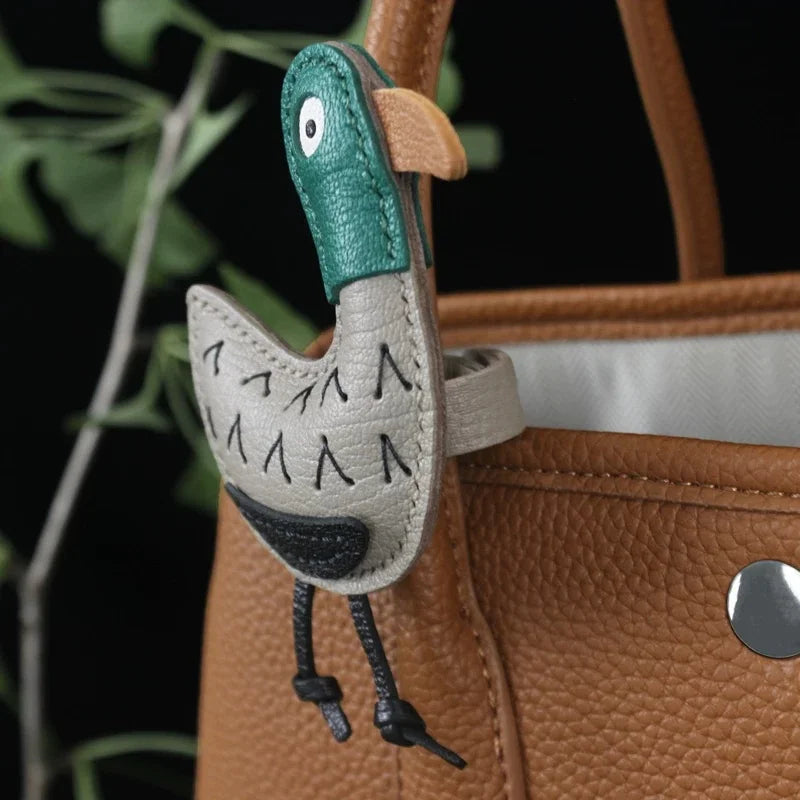 Lazy Duck Leather Bag Charm – Handmade Full-Grain Leather Pendant | Whimsical Duck Keychain for Bags | Playful Minimalist Animal Accessory