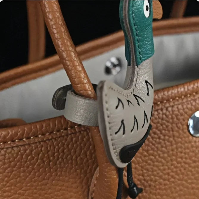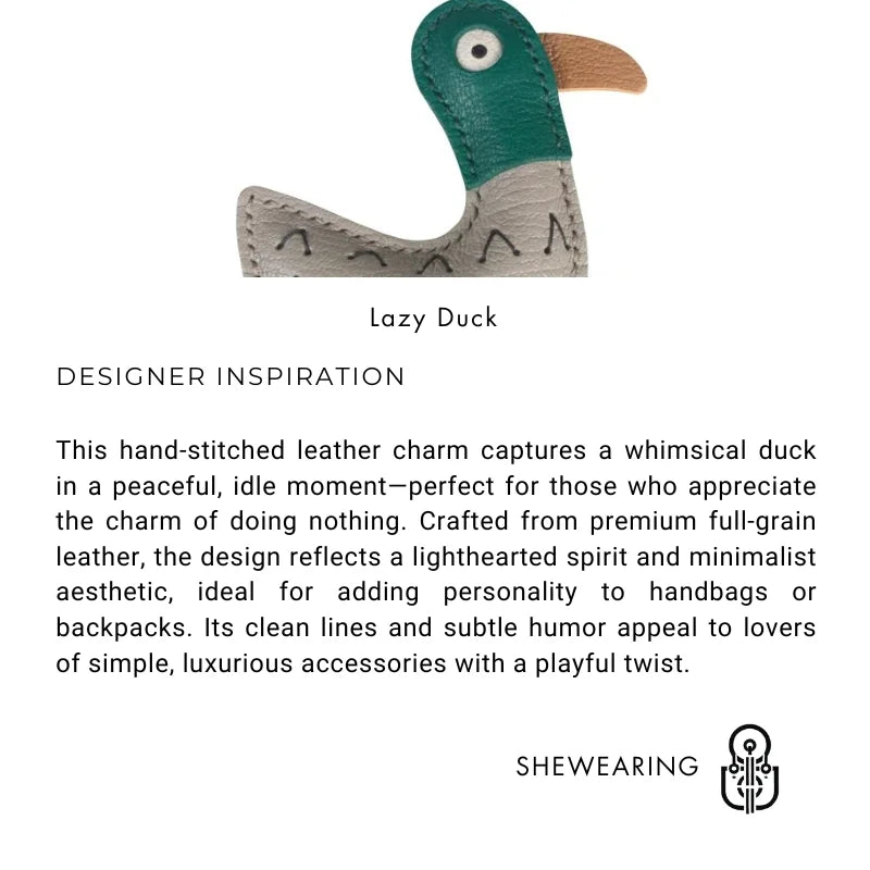 Bring a touch of playful serenity to your bag with our Lazy Duck Leather Bag Charm. Lovingly handmade from full-grain leather, this minimalist duck pendant captures the essence of peaceful idleness with a charming, relaxed pose. Designed for both style and whimsy, it blends high-end craftsmanship with a lighthearted mood—ideal for those who love accessories that reflect their unique personality. The charm is lightweight yet durable, with fine hand-stitching that adds an artisanal touch. Whether clipped to your handbag, tote, or keys, it brings a sense of calm and character to your daily carry. Perfect as a gift for friends who appreciate slow living and thoughtful design, or as a personal treat to brighten your accessories. Let this little duck remind you to pause and enjoy the simple moments.
