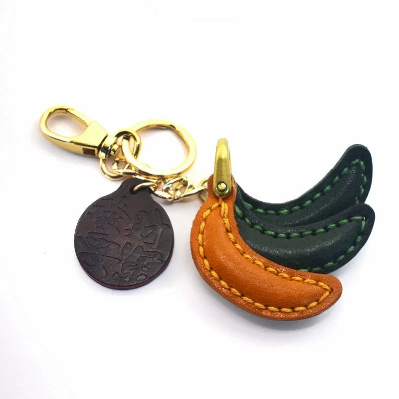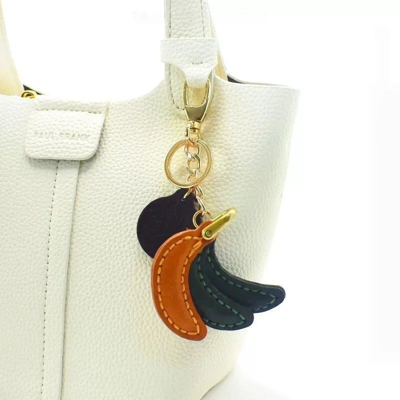 Lucky Banana Leather Bag Charm – Handmade Full-Grain Cowhide Fruit Keychain | Playful Yellow Accessory | Unique Charm for Bags & Gifts