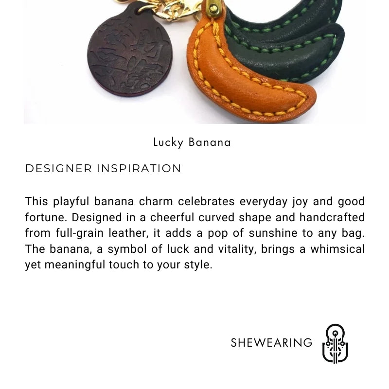 Add a fun and symbolic flair to your everyday carry with our Lucky Banana Leather Bag Charm. Expertly handcrafted from premium full-grain cowhide, this banana-shaped charm is a delightful blend of humor and craftsmanship. Its smooth curves and vibrant yellow tones bring a sunny vibe to your handbag, backpack, or keys, while the strong leather and precise stitching ensure durability.
