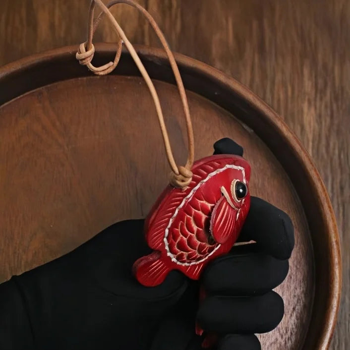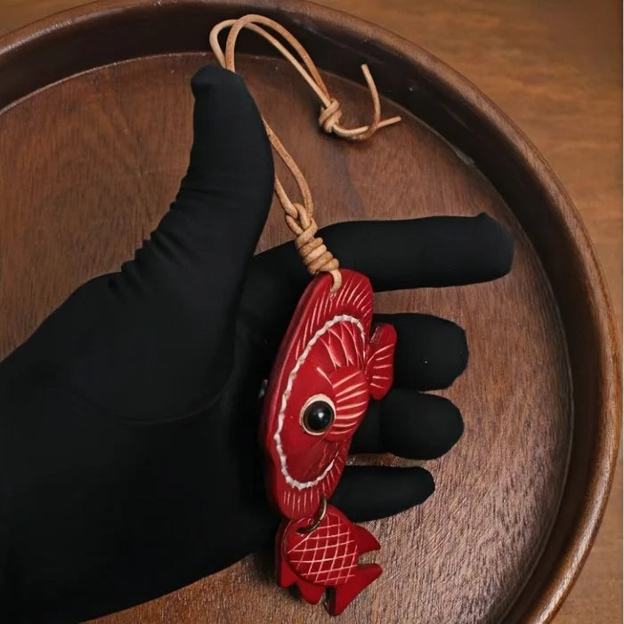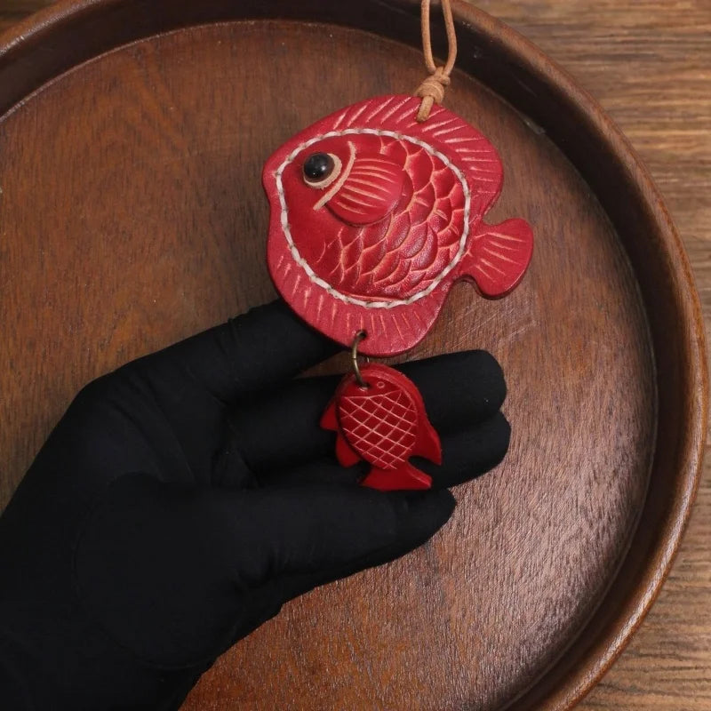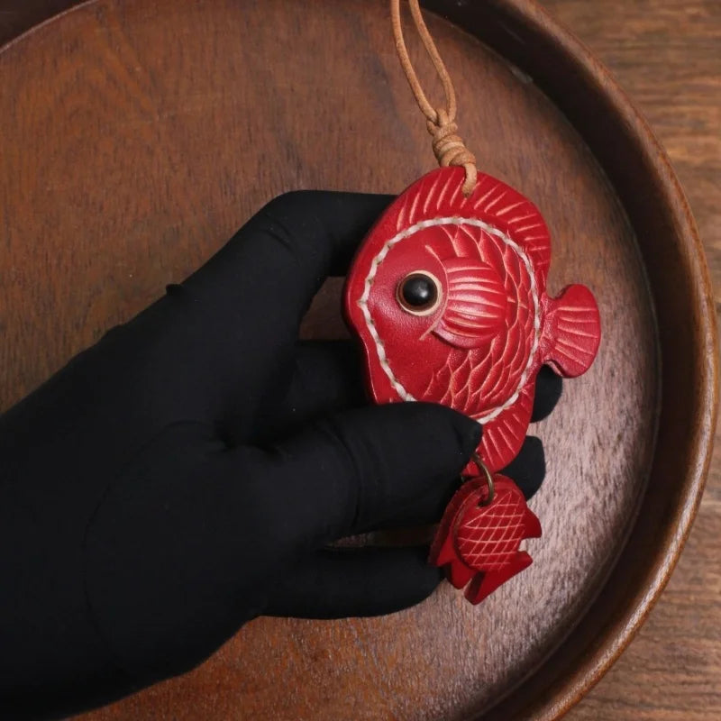 Lucky Fish Leather Bag Charm – Handmade Full-Grain Leather Pendant | Symbol of Joy & Prosperity | Retro DIY Accessory for Bags & Keys