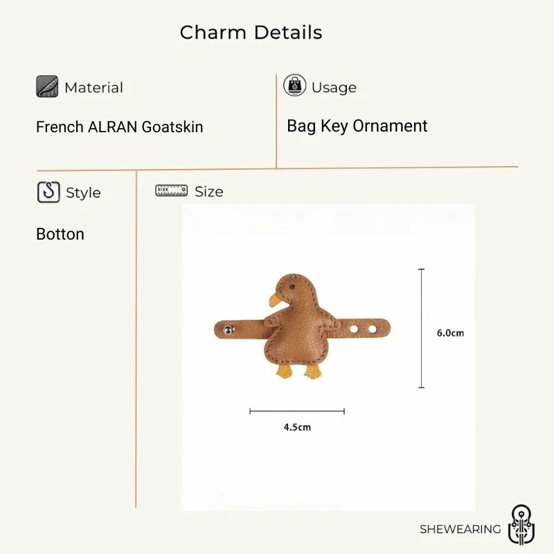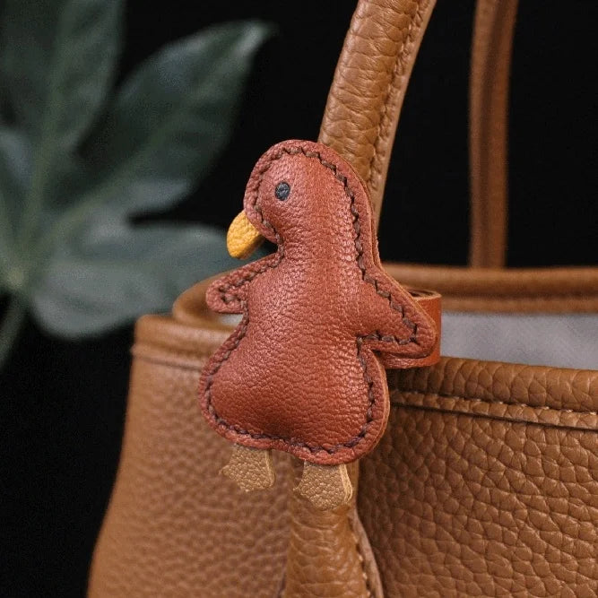 Lucky Roast Duck Leather Bag Charm – Handmade Full-Grain Leather Pendant | Whimsical Culinary-Inspired Accessory | Unique Symbol of Good Fortune & Style