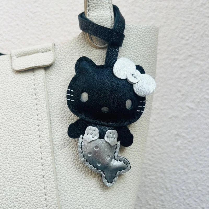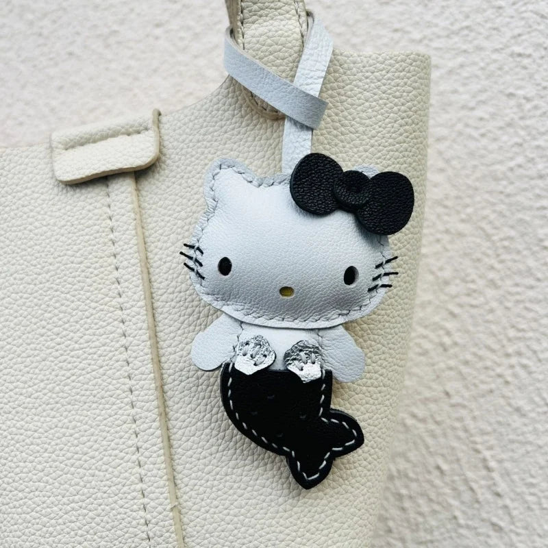 Mermaid Cat Leather Bag Charm – Handmade Whimsical Keychain | Fantasy Cat Pendant | Cute Gift for Mermaid Lovers