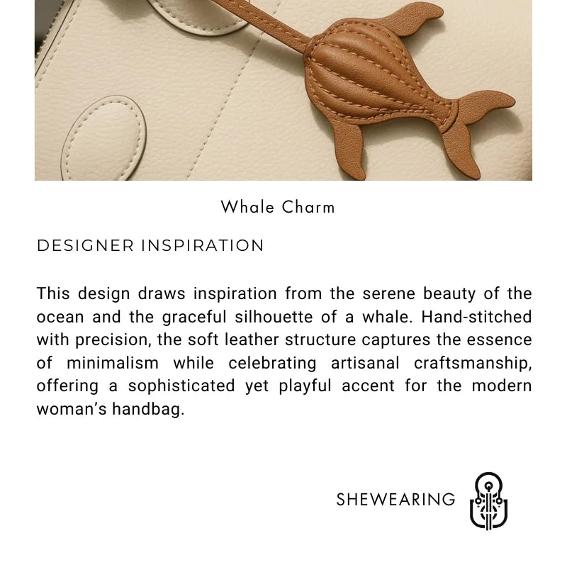 The Whale Leather Bag Charm combines simplicity and artistry to create a unique accessory that resonates with elegance and character. Crafted from premium full-grain leather, each piece is handmade by artisans who value precision and timeless quality. The charming whale silhouette, complete with subtle stitched details, brings a sense of serenity and creativity to your handbag style.