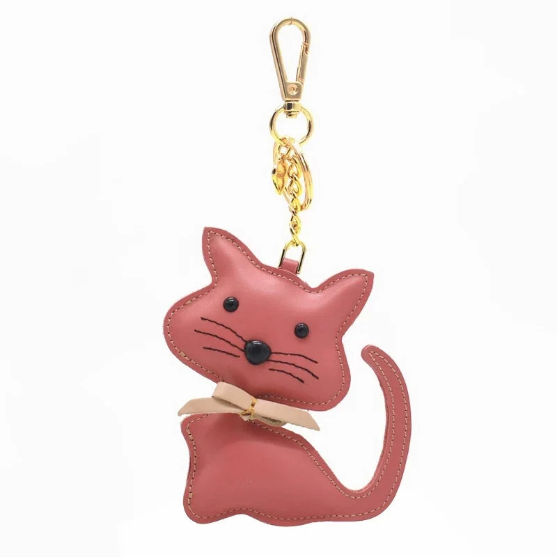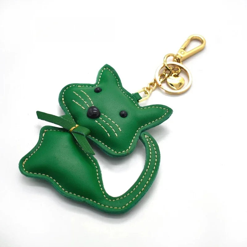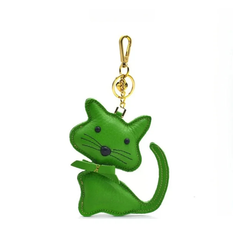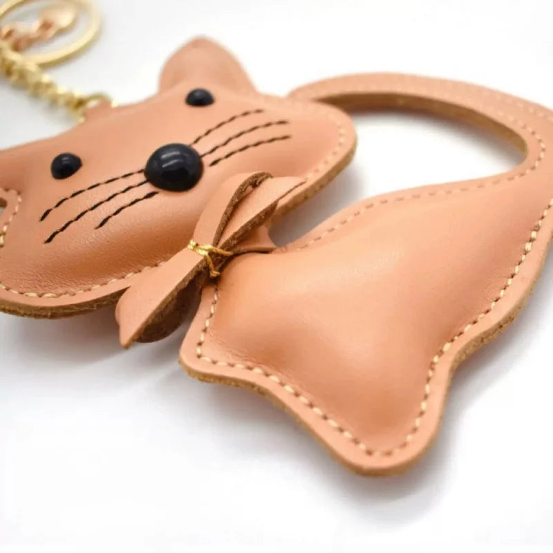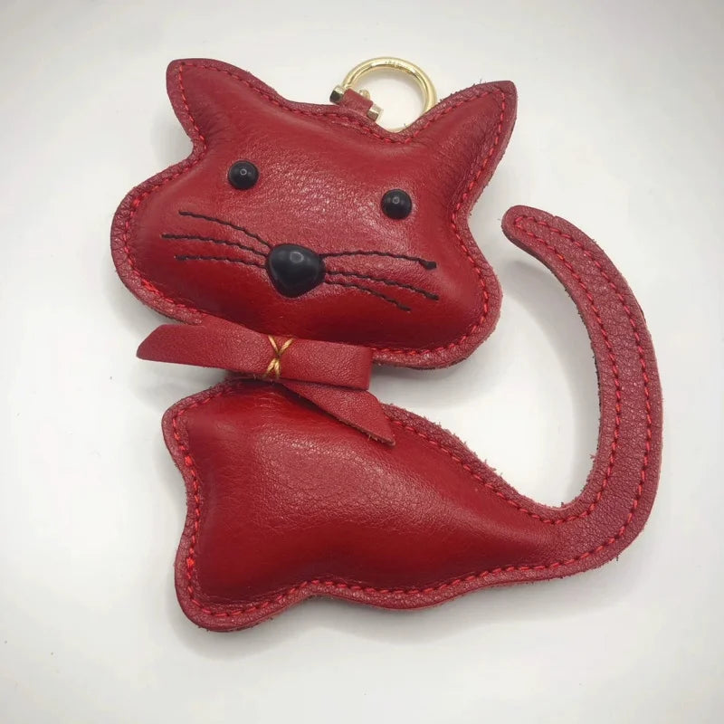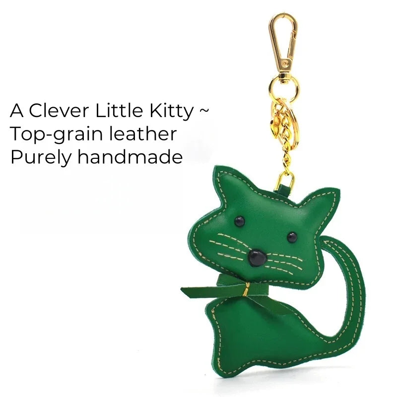 Nordic Gentle Cat Leather Bag Charm – Handmade Full-Grain Leather Keychain | Cute Animal Bookmark & Bag Pendant | Soft-Tone INS Gift for Cat Lovers