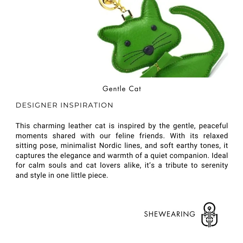 Meet the Nordic Gentle Cat Leather Charm – a soft-spoken symbol of companionship and calm. Crafted from full-grain leather, this sitting cat silhouette features clean Nordic lines and neutral tones, perfectly suited for those who appreciate subtle beauty and animal-inspired design. Its smooth texture, delicate stitching, and sweet expression create a soothing visual presence.