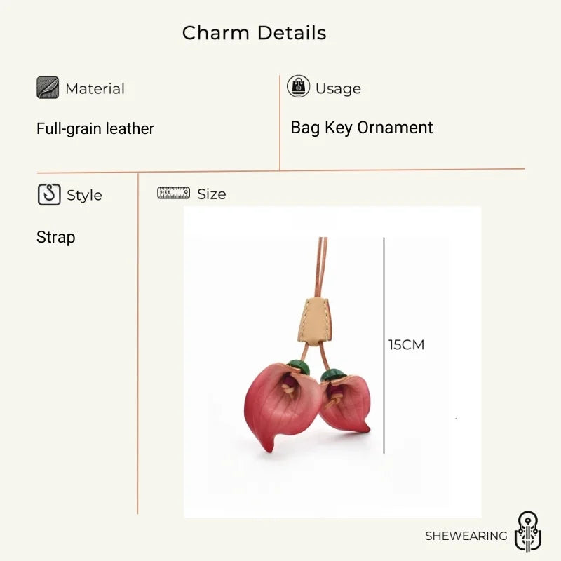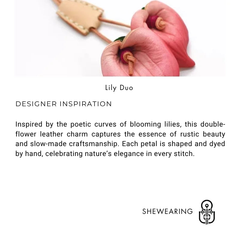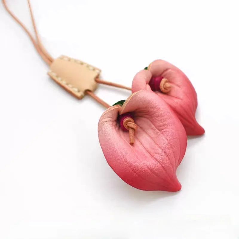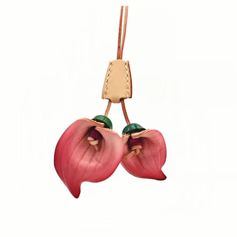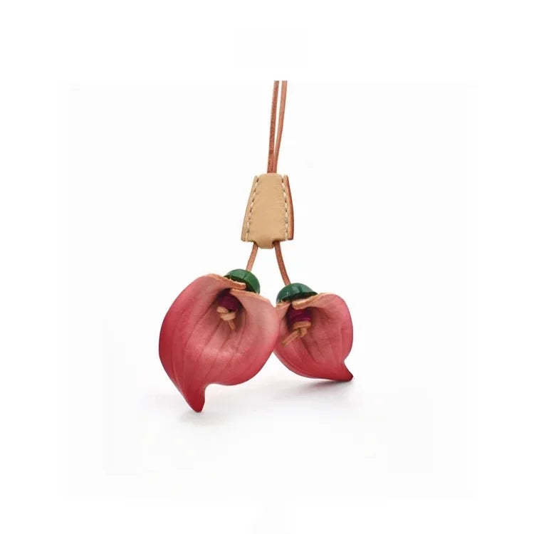 Nordic-Style Leather Lily Bag Charm – Handmade Floral Pendant for Handbags or Car Décor | Full-Grain Cowhide | Double Blossom Design | Perfect Artisan Gift for Her