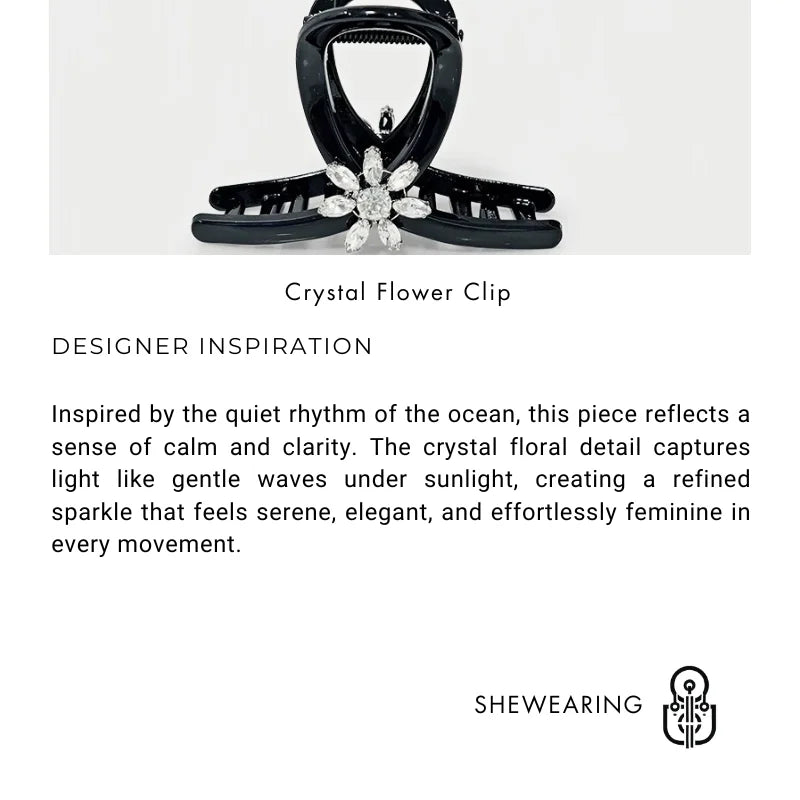 Ocean Calm Crystal Hair Claw Clip – French-Inspired Elegant Hair Accessory | Handcrafted Sparkling Floral Claw Clip for Women | Secure Hold Statement Hairpiece Gift for Her